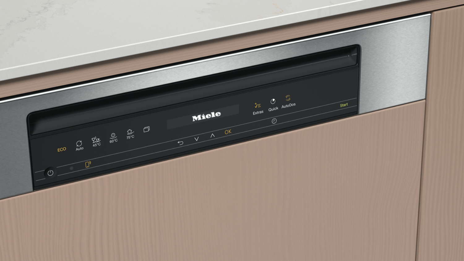 Experience the ultimate cleaning power of the Miele 15 Place Setting Semi-Integrated Dishwasher. Delivering seamless detergent dispensing, this appliance features AutoDos and PowerDisk technology. You can also enjoy faster clean-ups with the QuickPowerWash program, as well as experience maximum efficiency with EcoPower Technology. Plus, its flexible tray allows effortless loading of all your dishes, from tall glasses to bulky pots and pans.