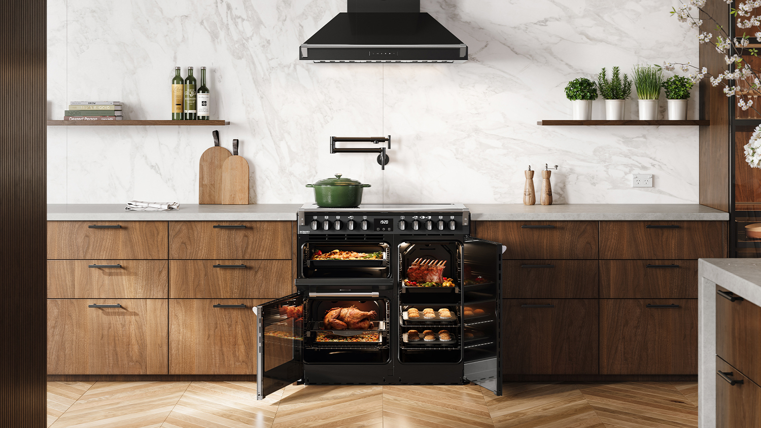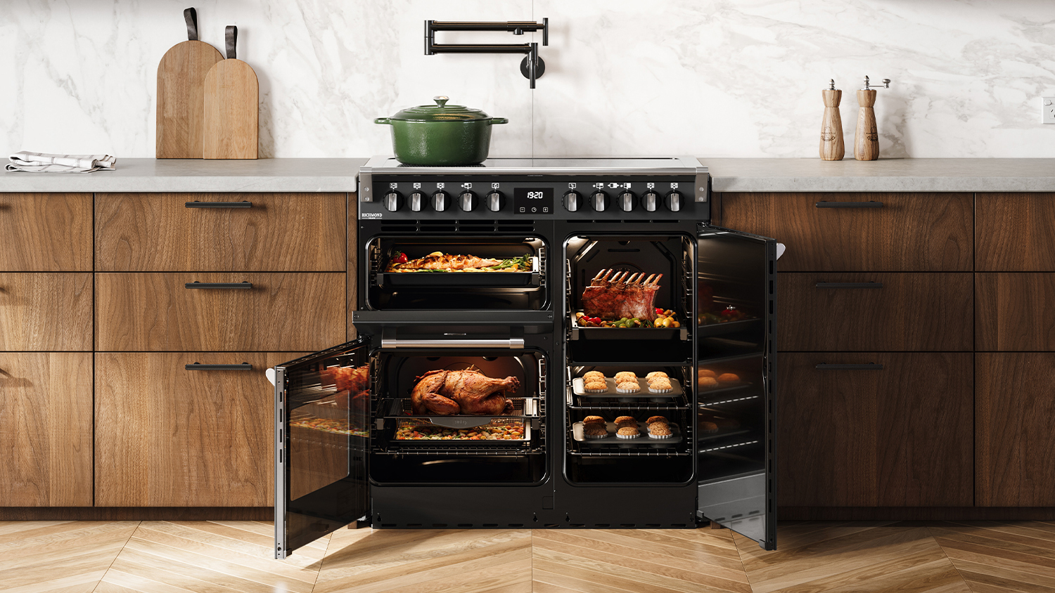 Experience the ultimate culinary convenience and versatility with the Belling 90cm Freestanding Oven with Induction Cooktop. This appliance boasts three oven cavities and five cooking zones, allowing you to create multiple delicious dishes simultaneously. It also packs 18 oven functions, so you can grill, bake, slow cook, proof, and warm various meals. Furthermore, this unit has touch controls and dials for breezy operations.