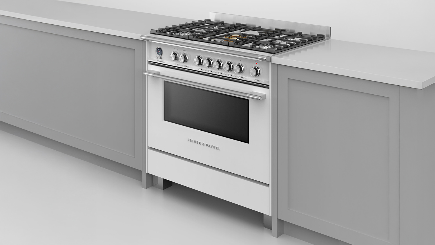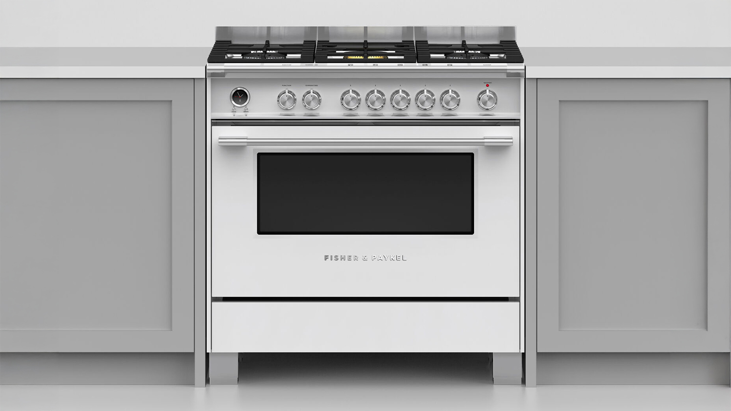 Fisher & Paykel 90cm Dual Fuel Freestanding Oven with 5 Burner Gas Cooktop - White (Series 9/ OR90SCG6W1)