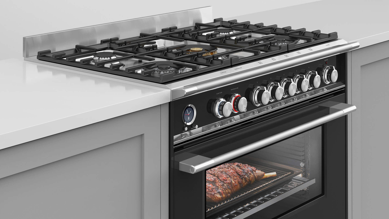 Optimise your meal prep experience using the Fisher & Paykel 90cm Dual Fuel Freestanding Oven with Gas Cooktop. Built to handle your different culinary needs, this nifty appliance offers 9 oven functions and 5 zones with a wok burner. It also packs various innovative features, such as AeroTech technology, a Pyrolytic Self-cleaning feature, a warming drawer, durable trivets, and glowing halo dials.
