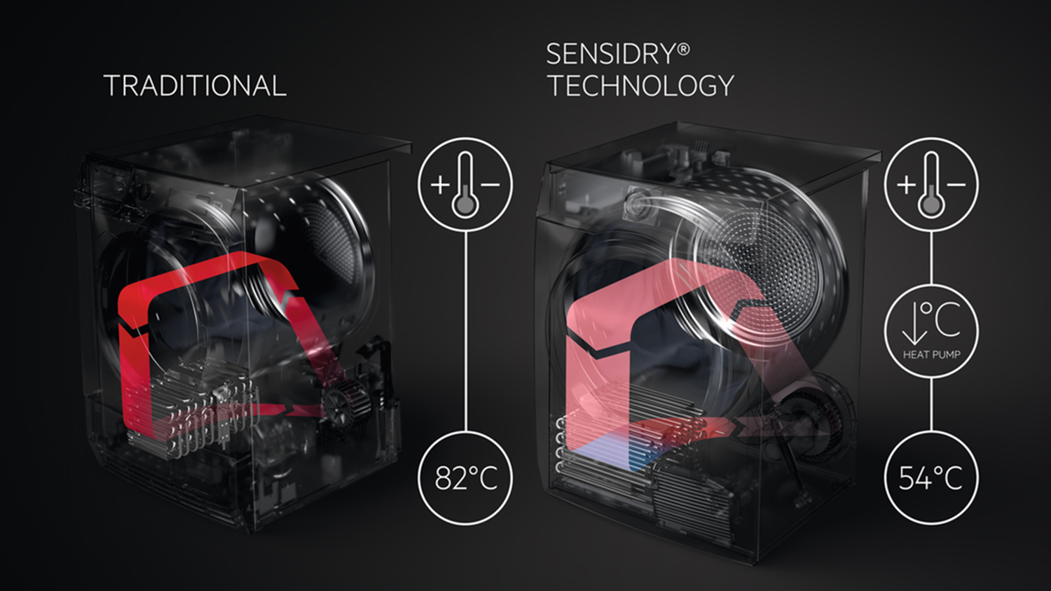| Drying Method | Energy-Efficient Recycled Warm Air + Lower Temperatures + Excess Moisture Is Condensed & Removed |