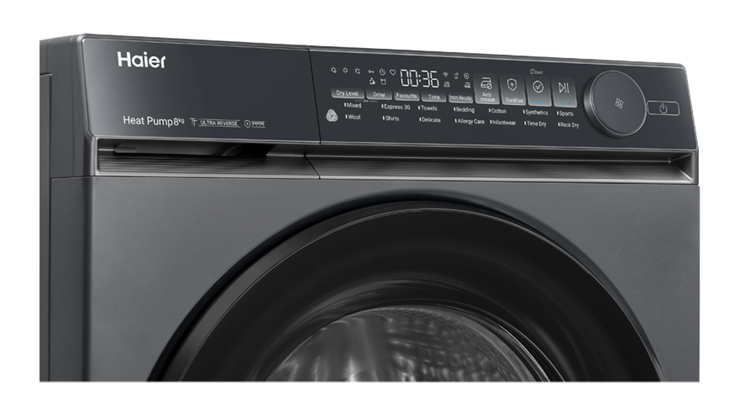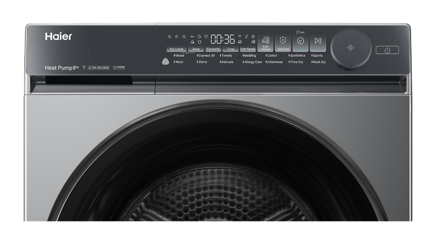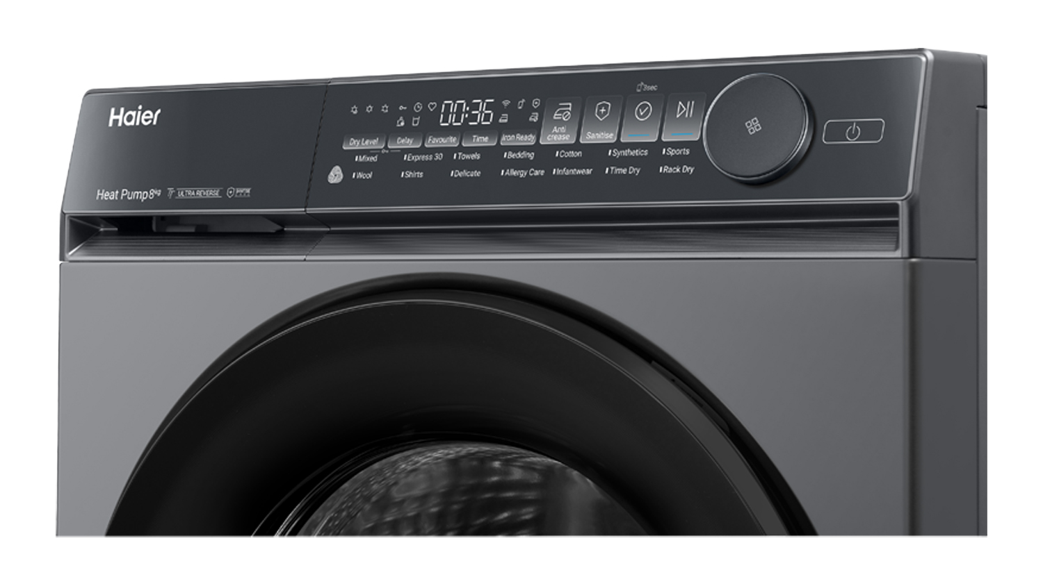 Dry your clothes faster and more efficiently with the Haier 500 Series 8kg Heat Pump Smart Dryer. This unit pairs Heat Pump Technology with an 8‑star energy rating to help reduce energy use without sacrificing performance. A full suite of drying programs and advanced sensors ensures every load gets the right care, while the Ultra Reverse Drum keeps clothes from tangling. Plus, easy LED controls, Wi‑Fi connectivity through the SmartHQ app, and essential safety features make it simple to use every day.