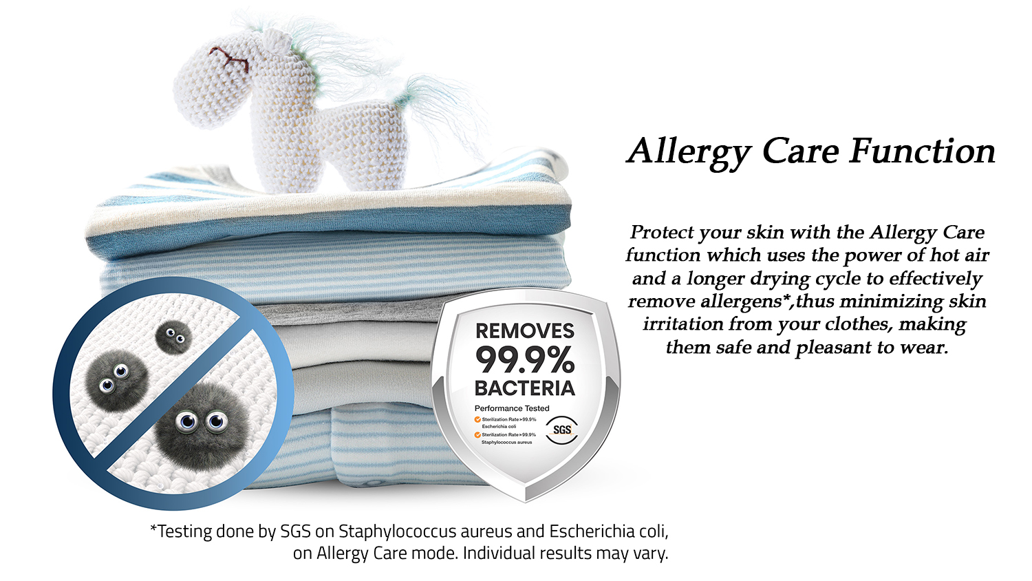 *Testing done by SGS on Staphylococcus aureus and Escherichia coli, in Allergy Care mode. Individual results may vary.