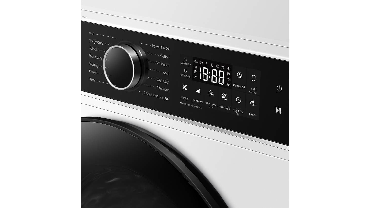 | Fabric Type Selection | Cotton + Dry Level (Cupboard) + Time Dry +/- (Hold on 3s) |