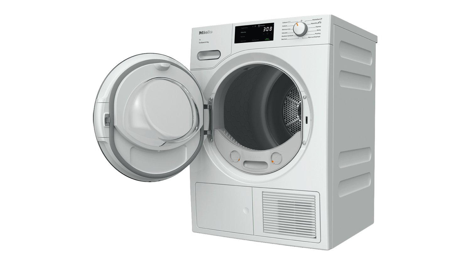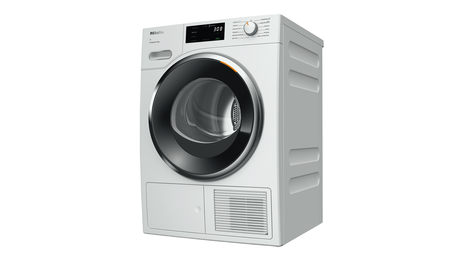 *Time savings calculated compared to Miele tumble dryers without EcoSpeed with the same load size and similar energy efficiency. Tested in the “Cottons” programme with a full load size.