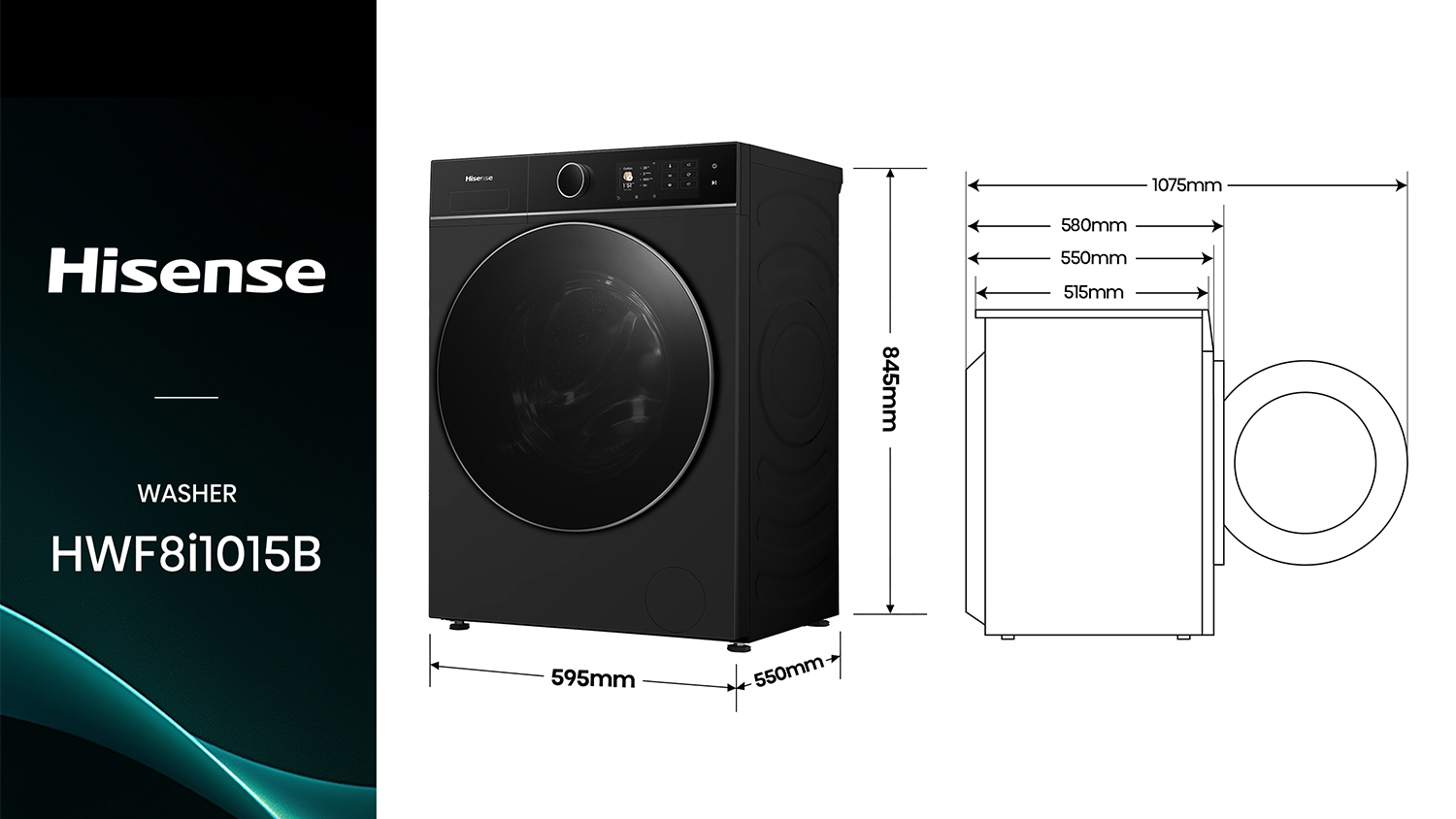 Hisense Series 8i 10kg Front Loader Washing Machine - Black (HWF8I1015BX)