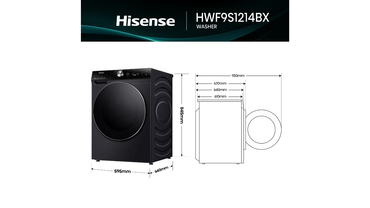 Hisense Series 9s 12kg Front Loader Washing Machine - Black (HWF9S1214BX)