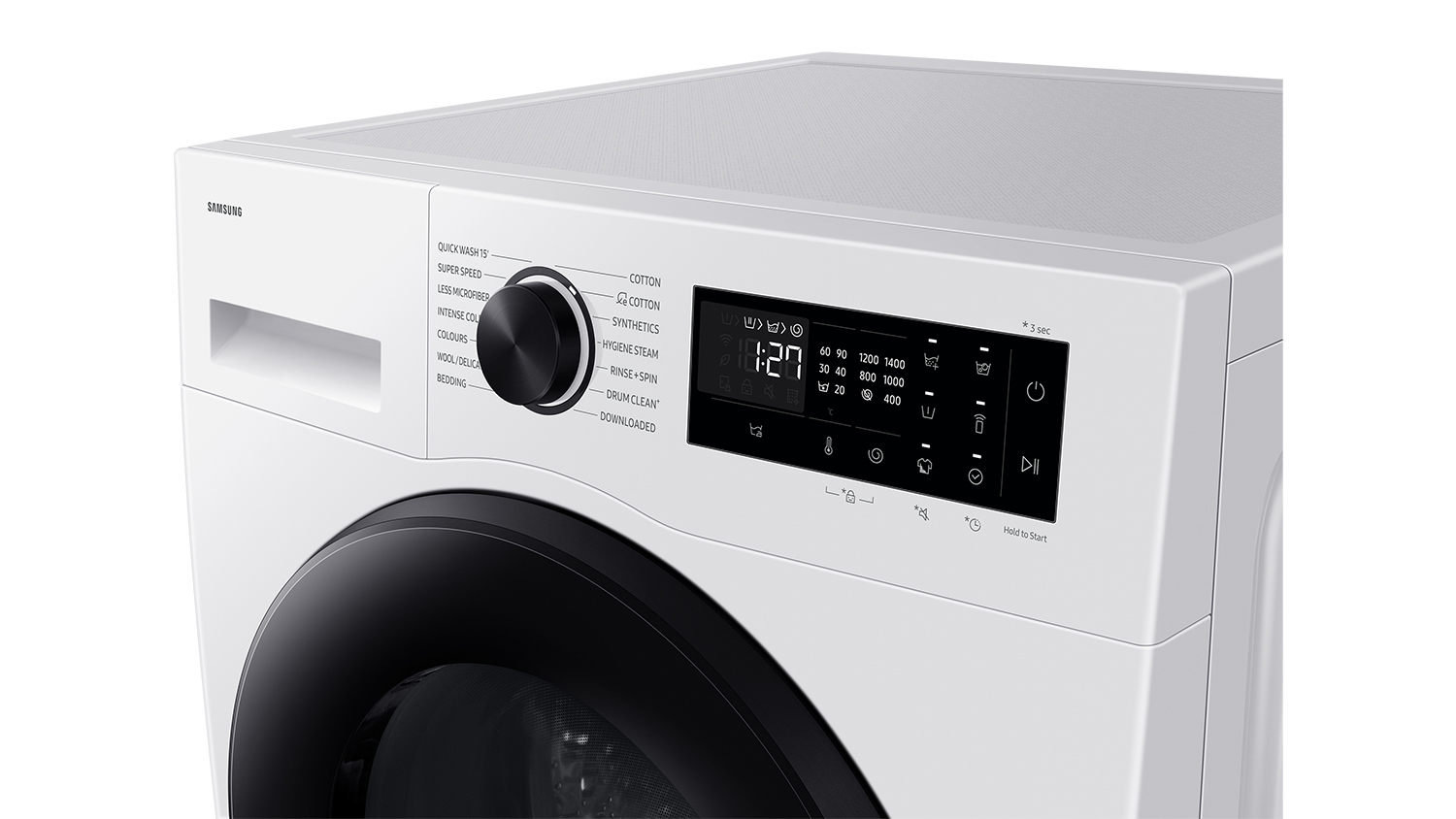 | Wash Programs | Quick Wash, Super Speed, Less Microfiber, Intense Cold, Colours, Wool/Delicates, Bedding, E Cotton, Cotton, Synthetics, Hygiene Steam, Drum Clean+, Downloaded, Rinse + Spin |