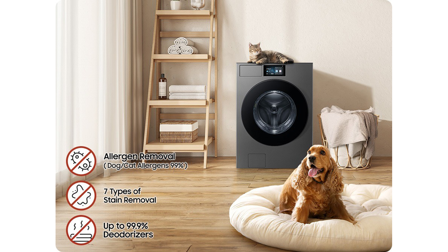 6Tested on WF8000R. Based on internal testing compared to the Samsung conventional model without AI VRT+™.