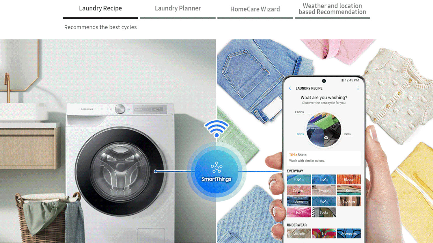 - Simpler Laundry Routines: Enjoy effortless laundry with SmartThings connectivity, giving you remote access and smart recommendations for every wash. Meanwhile, the AI Control personalises settings1, learns your habits, and syncs with your dryer for perfectly matched cycles2.