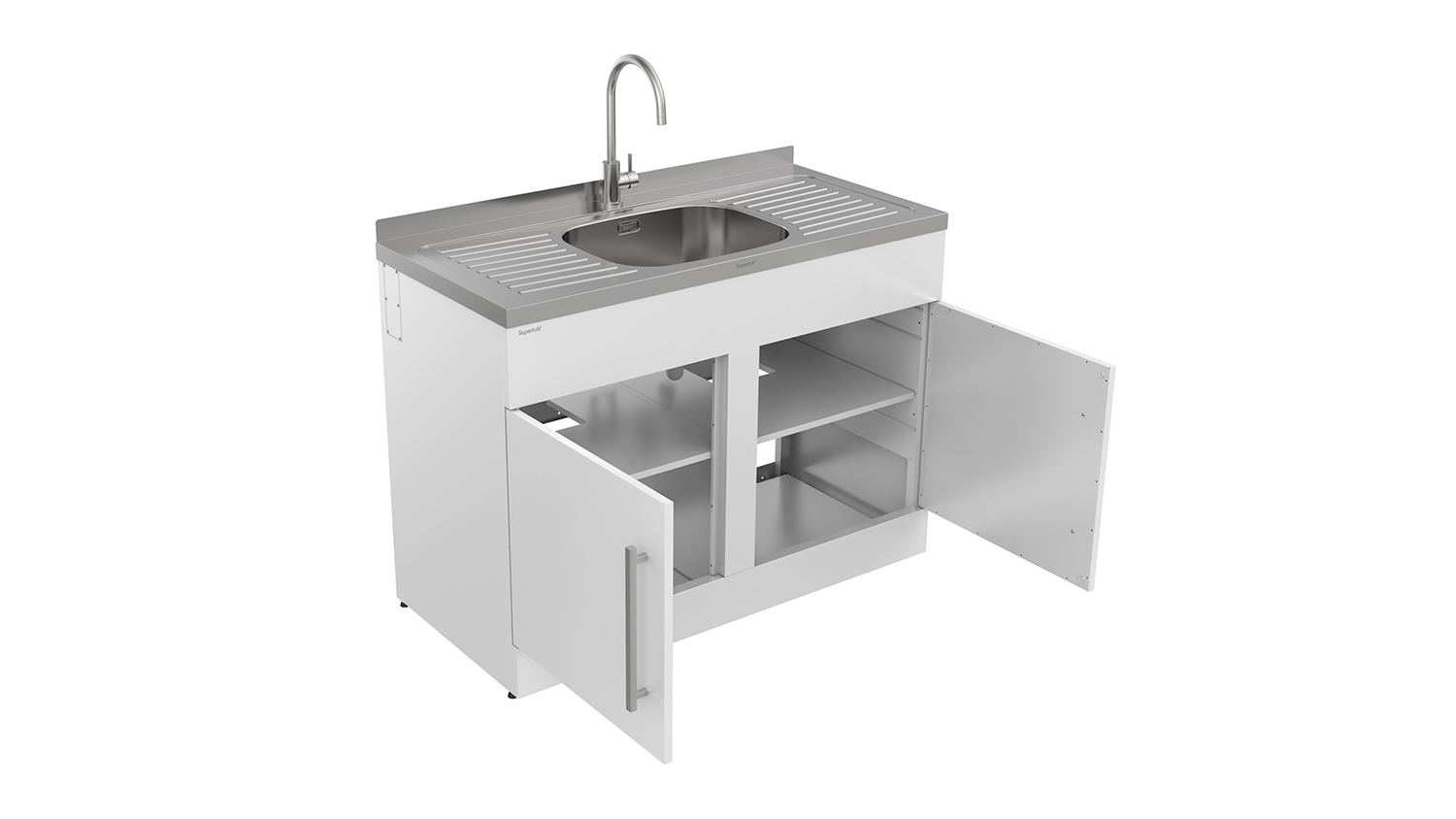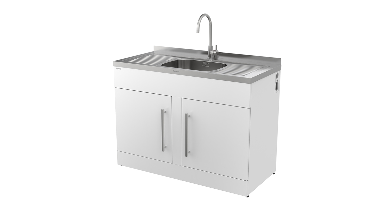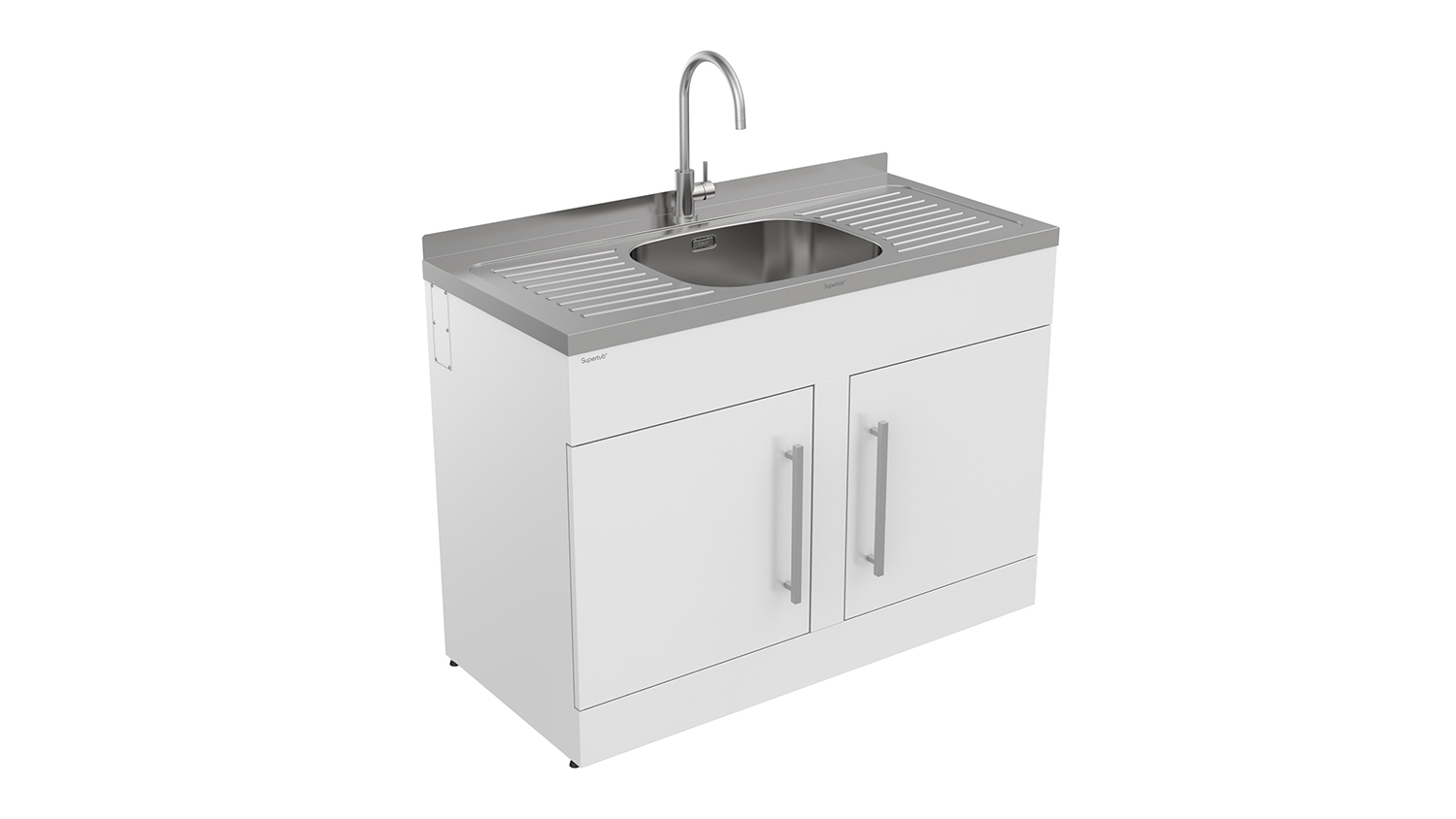 Manage heavy loads efficiently with the help of the Robinhood 25.5L Supertub Wide Body Workstation Laundry Tub. Delivering total versatility, this appliance perfectly combines the functionalities of a spacious tub, two large cabinets, and a stainless steel gooseneck tap. It also offers a huge bench space for easy wash preparation and organisation. Plus, it boasts a satin white finish to blend seamlessly into your laundry area.
