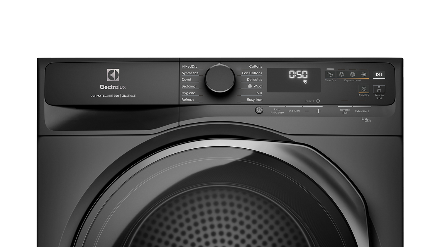 | Dryness Settings | Cotton, Synthetic, Delicate, Silk, Refresh, Duvet, Wool, Eco Cotton, Easy Iron, Bedding+, MixDry, Hygiene |