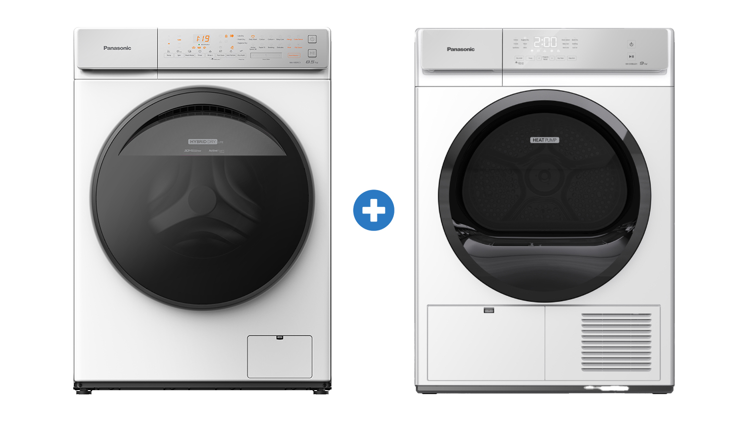 Laundry day just got a whole lot easier with the Panasonic 8.5kg Front Loading Washing Machine & 9kg Heat Pump Condenser Dryer Package. This dynamic duo boasts 16 wash modes and 12 drying programs, ready to tackle your laundry piles effortlessly. The washing machine features AI Smart Wash for tailored optimal cleaning, while the dryer's Heat Pump technology ensures energy-efficient drying every time.