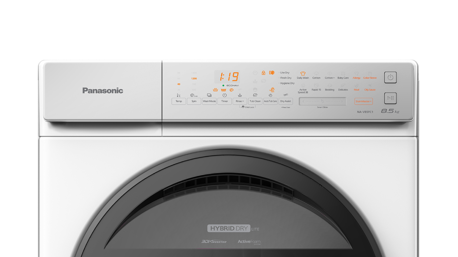 | Wash Programs | DailyWash, Cotton, Cotton+, Baby Care, Allergy, Rinse+, Tub Clean, Auto Tub Care, Dry Assist, Active Speed38, Rapid15, Bedding, Delicates, StainMaster (Collar/Sleeves), StainMaster(Mud), StainMaster(Oily Sauce) |