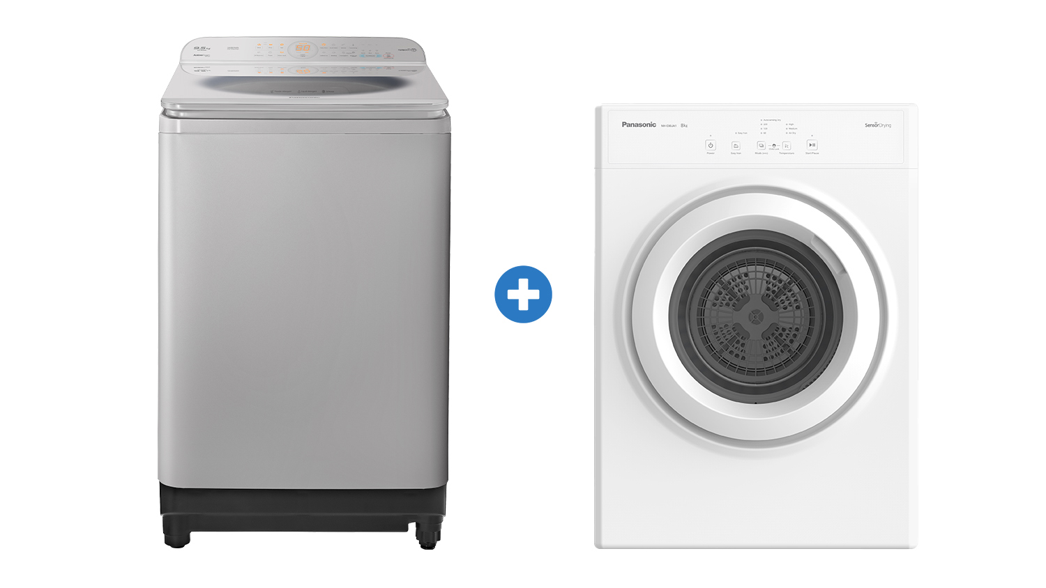 With the Panasonic 9.5kg Top Loading Washing Machine & 8kg Sensor Vented Dryer Package, tackling laundry piles is easier than ever. This powerful duo is packed with features that help save time and effort. The washer includes 6 pre-set programs, StainMaster technology, and an Active Wave Pulsator to lift stubborn stains, all in an ergonomic design for easy access and control. Meanwhile, the vented dryer uses a PTC heater and 60ºC Hygiene Drying to gently eliminate bacteria for a cleaner finish.