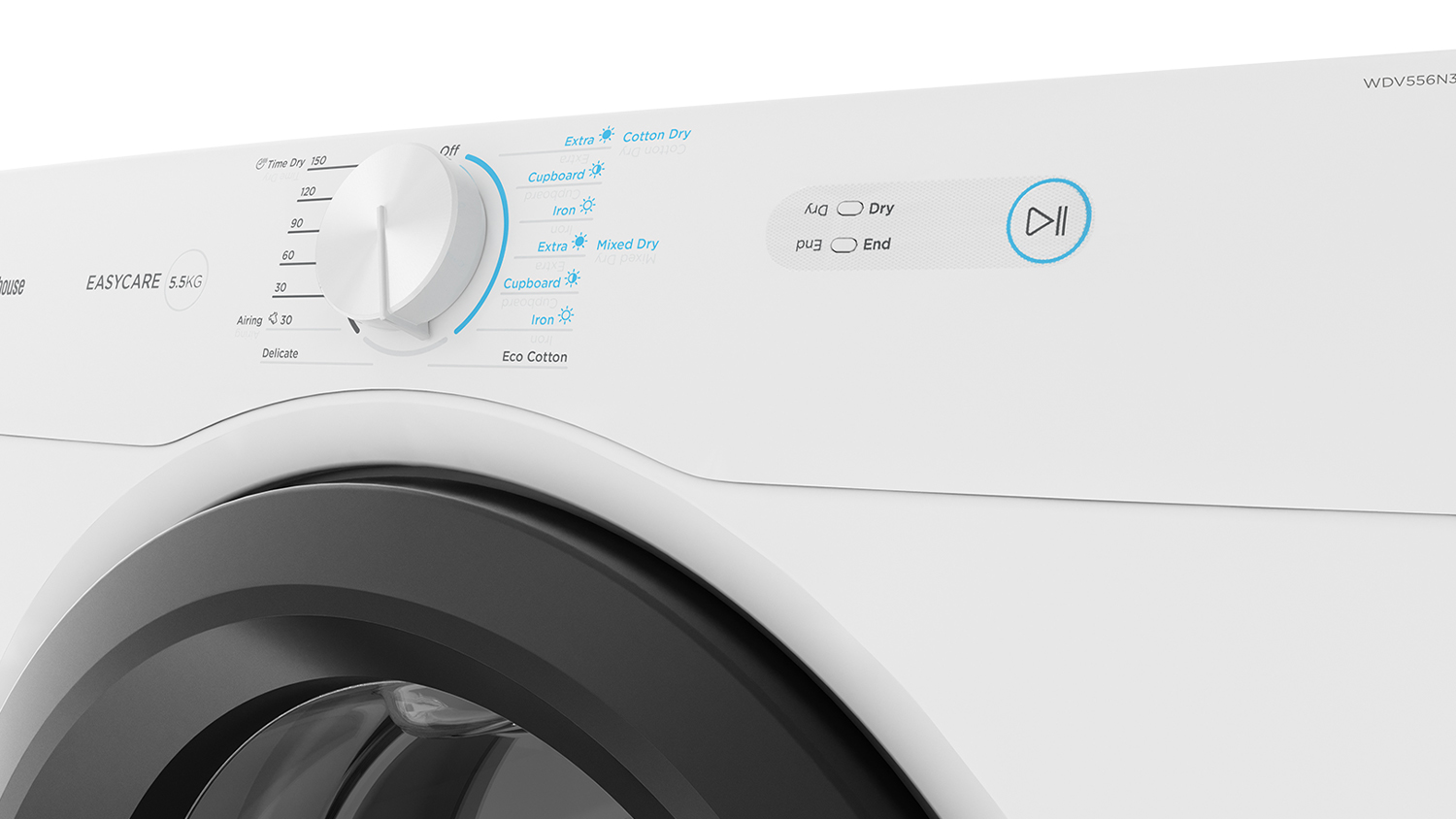 Dryer: Westinghouse 5.5kg Sensor Vented Dryer with 6 Programs - White (WDV556N3WB)