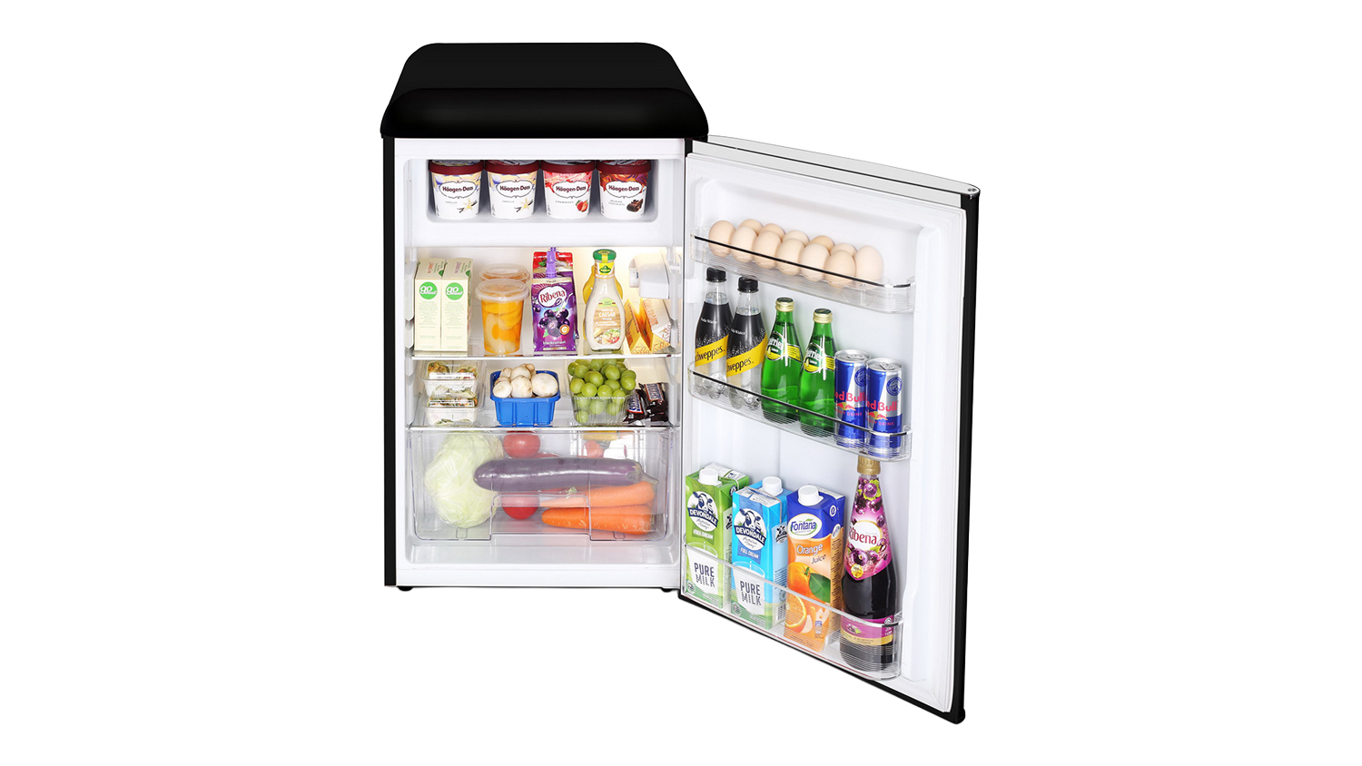 • Stylish Build: Designed with a nostalgic retro design and a lever handle, this bar fridge lets you add more charm and functionality to your space.