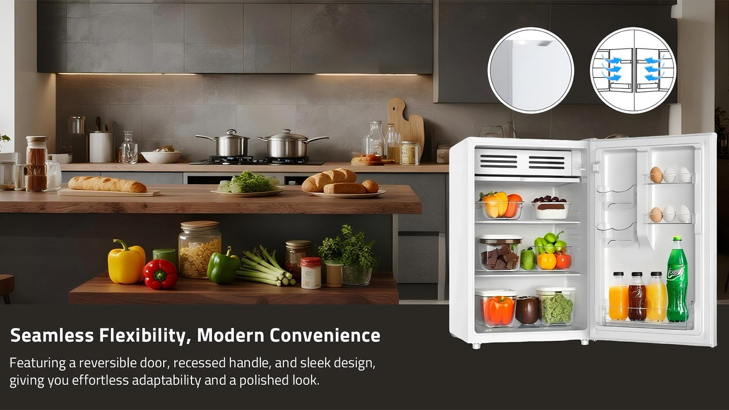 Keep your snacks and drinks within easy reach using the Konka 127LBar Fridge. A great addition to your home, this appliance combines practical organisation with quiet cooling performance. It also boasts well-designed storage shelves that accommodate various beverages, fresh produce, or frozen items.