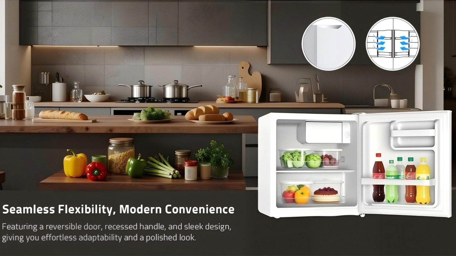 Keep your snacks and drinks within easy reach using the Konka 45L Bar Fridge. A great addition to your home, this appliance combines practical organisation with quiet cooling performance. It also boasts well-designed storage shelves that accommodate various beverages, fresh produce, or frozen items.