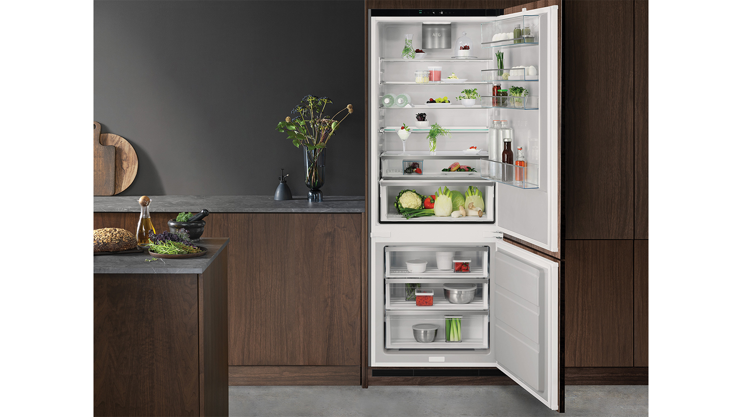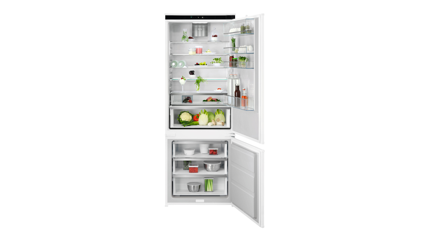Enjoy a stylish and efficient way of keeping your groceries fresh for longer with the AEG 7000 Series 376L Bottom Mount Integrated Fridge Freezer. This appliance features MaxiSpace for bigger capacity, ExtraZone for accommodating different food types, and GreenZonePlus for taking care of your fresh produce. It also highlights a 6-star energy rating and a sustainable build. Plus, this unit showcases a panel-ready design, allowing you to customise its doors to match your kitchen’s interior.