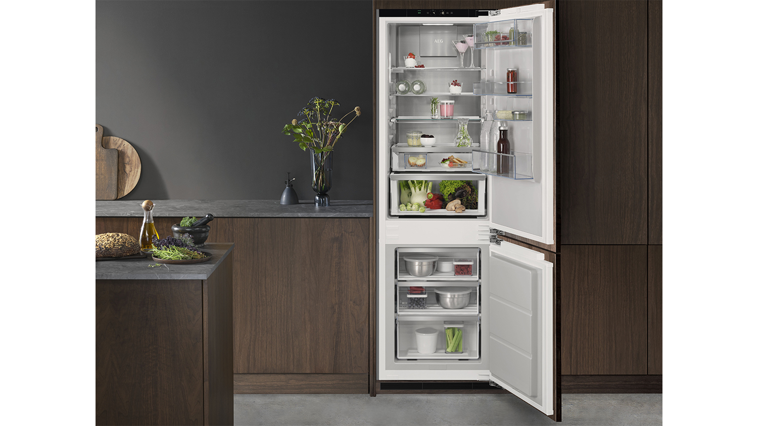 Add more style and convenience to your kitchen with the AEG 8000 Series 245L Bottom Mount Integrated Fridge Freezer. This appliance combines Cooling 360° Metal Cooling technology, TwinTech No Frost, and GreenZonePlus to accommodate your various food storage needs. It also highlights a 5-star energy rating and a sustainable build. Plus, this unit showcases a panel-ready design, allowing you to customise its doors to match your kitchen’s interior.