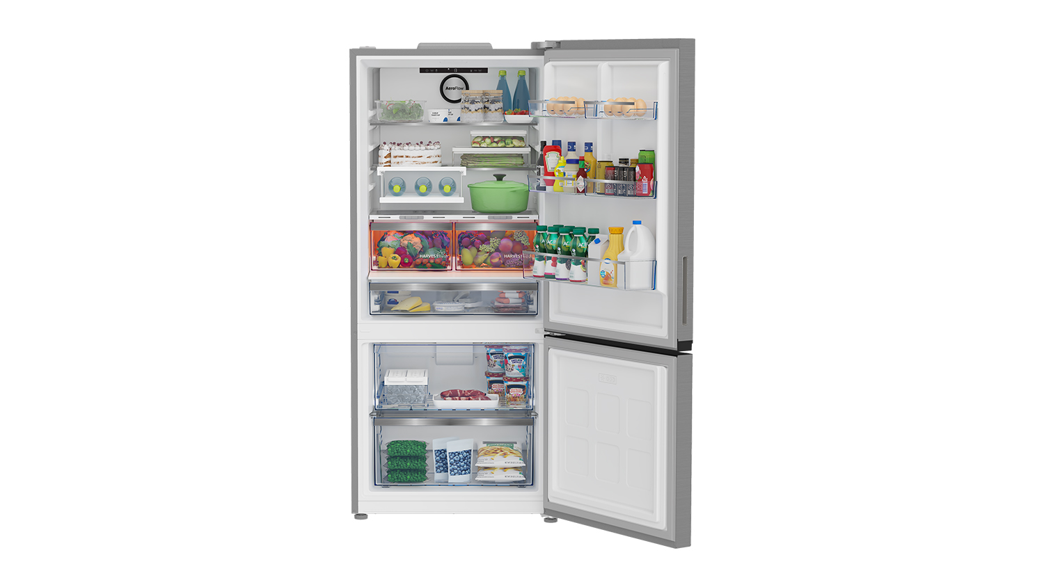 Enjoy effortless organisation and freshness preservation with the Beko 445L Bottom Mount Fridge Freezer. This unit features HarvestFresh and EverFresh+ to keep produce fresh and vitamin-rich for up to 30 days, along with an Active Odour Filter to eliminate unwanted smells. It also offers multiple shelves and baskets for extra storage space. Additionally, the ProSmart™ Inverter Compressor ensures efficient, quiet operations while reducing energy consumption.