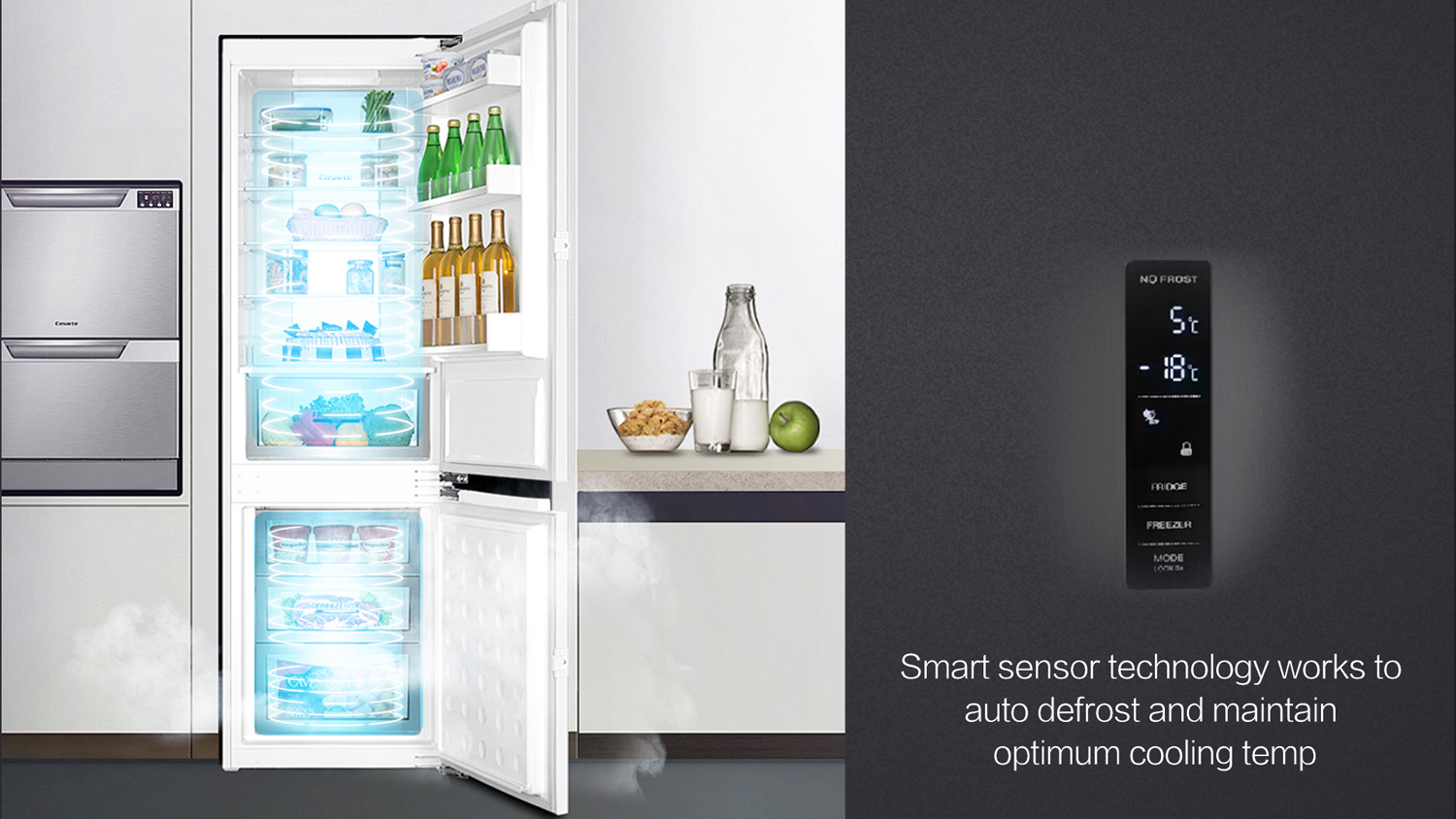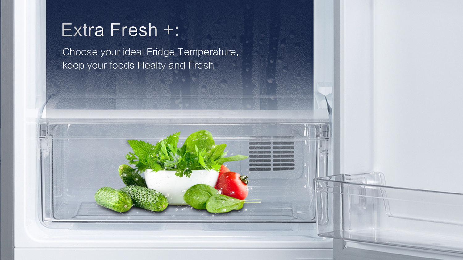 A perfect addition to any modern kitchen, the Konka 310L Bottom Mount Fridge Freezer offers ultimate convenience and efficiency. It features advanced sensors, Extra Fresh +, an array of storage compartments, and a bottom-mount freezer to meet all your refrigeration needs. It also highlights a white finish and space-saving design with a reversible door to fit with any kitchen layout and style.