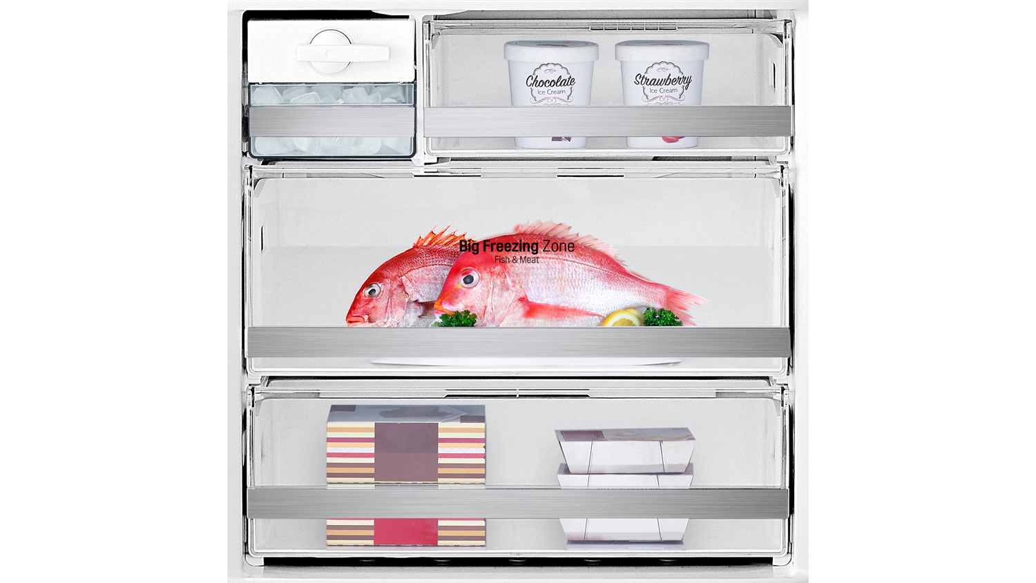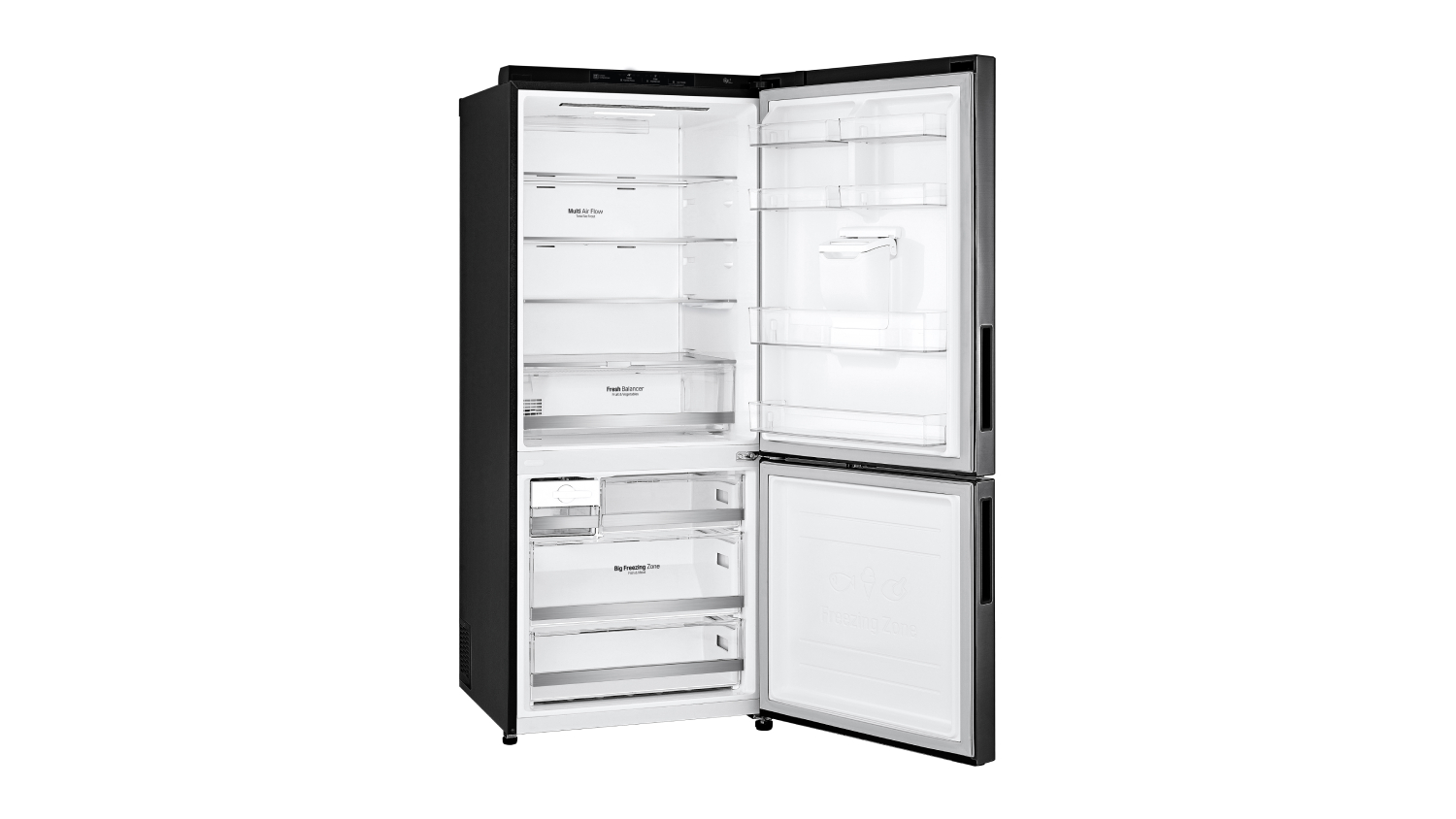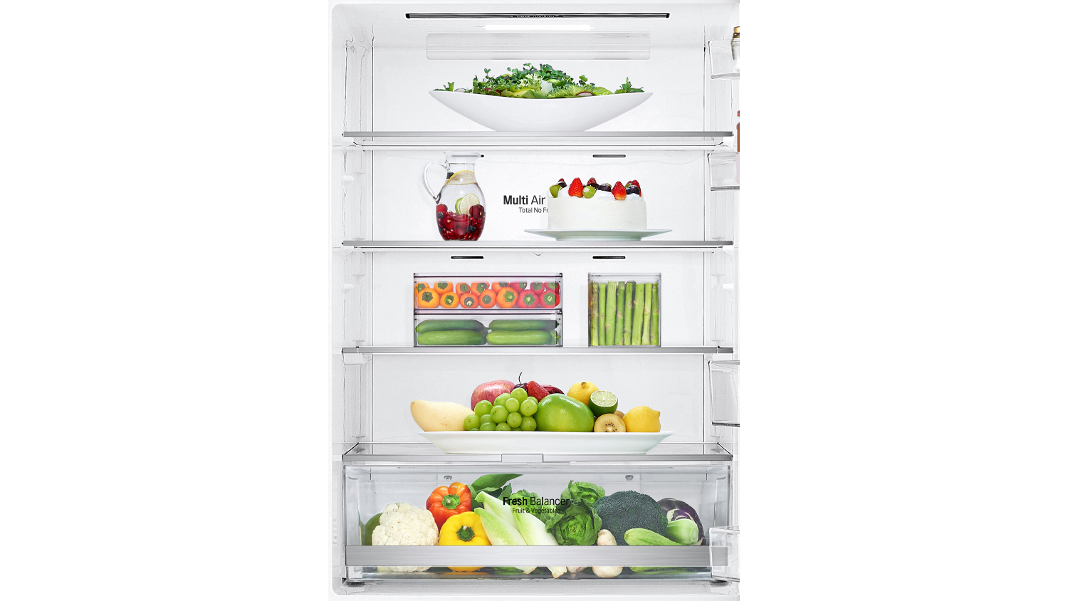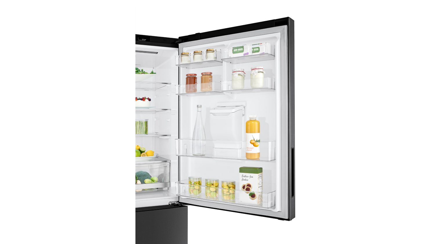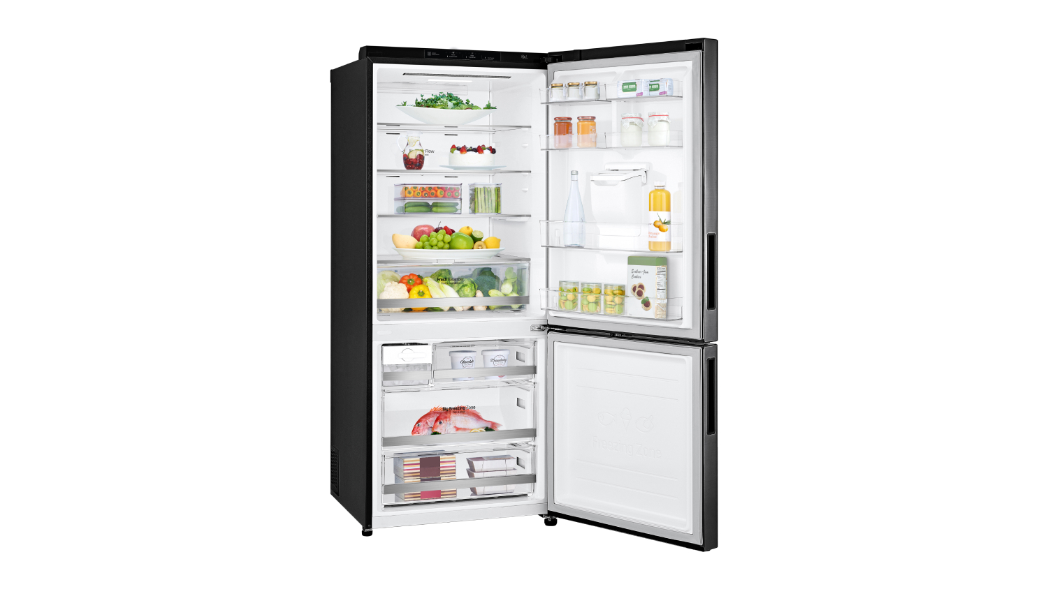 - Streamlined Cooling System: Combining SurroundCooling and LINEARCooling™, this LG fridge freezer distributes cool air efficiently from front to back. It also reduces internal temperature fluctuations to preserve your goods’ fresh taste and appearance. Plus, this unit integrates Door Cooling™ to take care of stored items located in the top door baskets