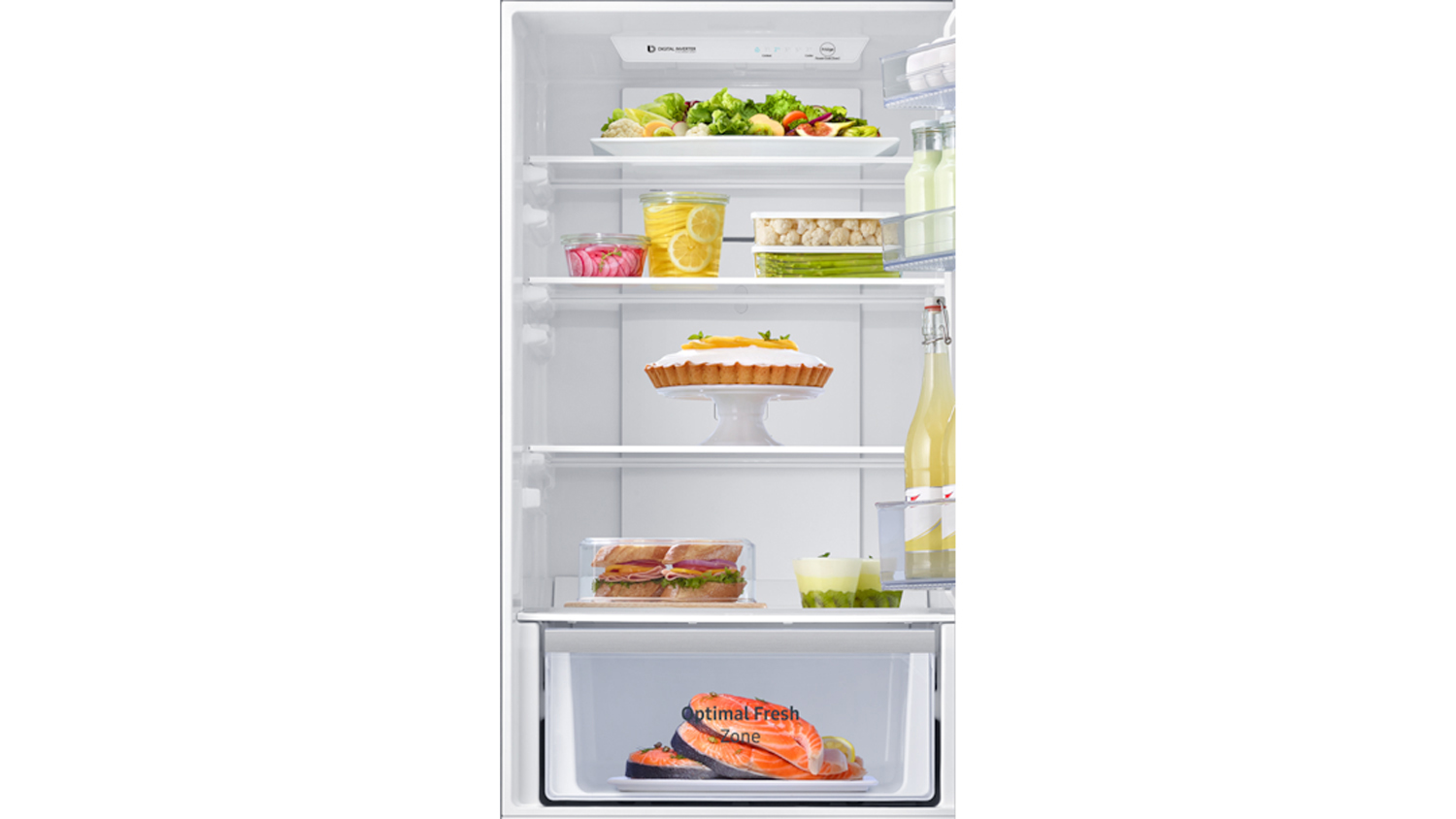 Optimally store your groceries in this Samsung 310L Bottom Mount Fridge Freezer! A great investment for your household, this appliance utilises a Digital Inverter Compressor that delivers a robust and energy-efficient cooling performance. It also features All-Around Cooling with Optimal Fresh Zone to effectively preserve your various food items.