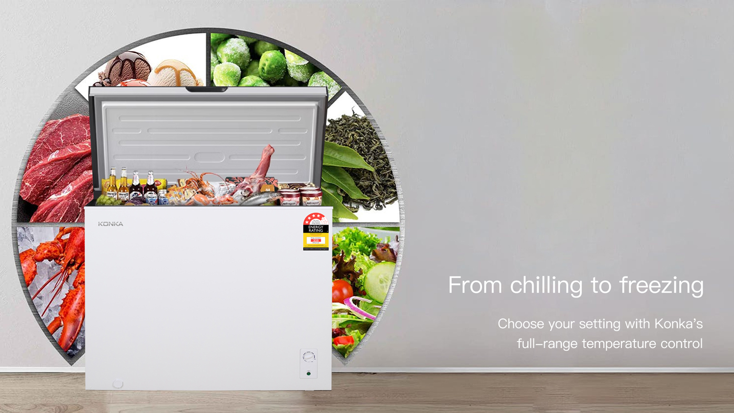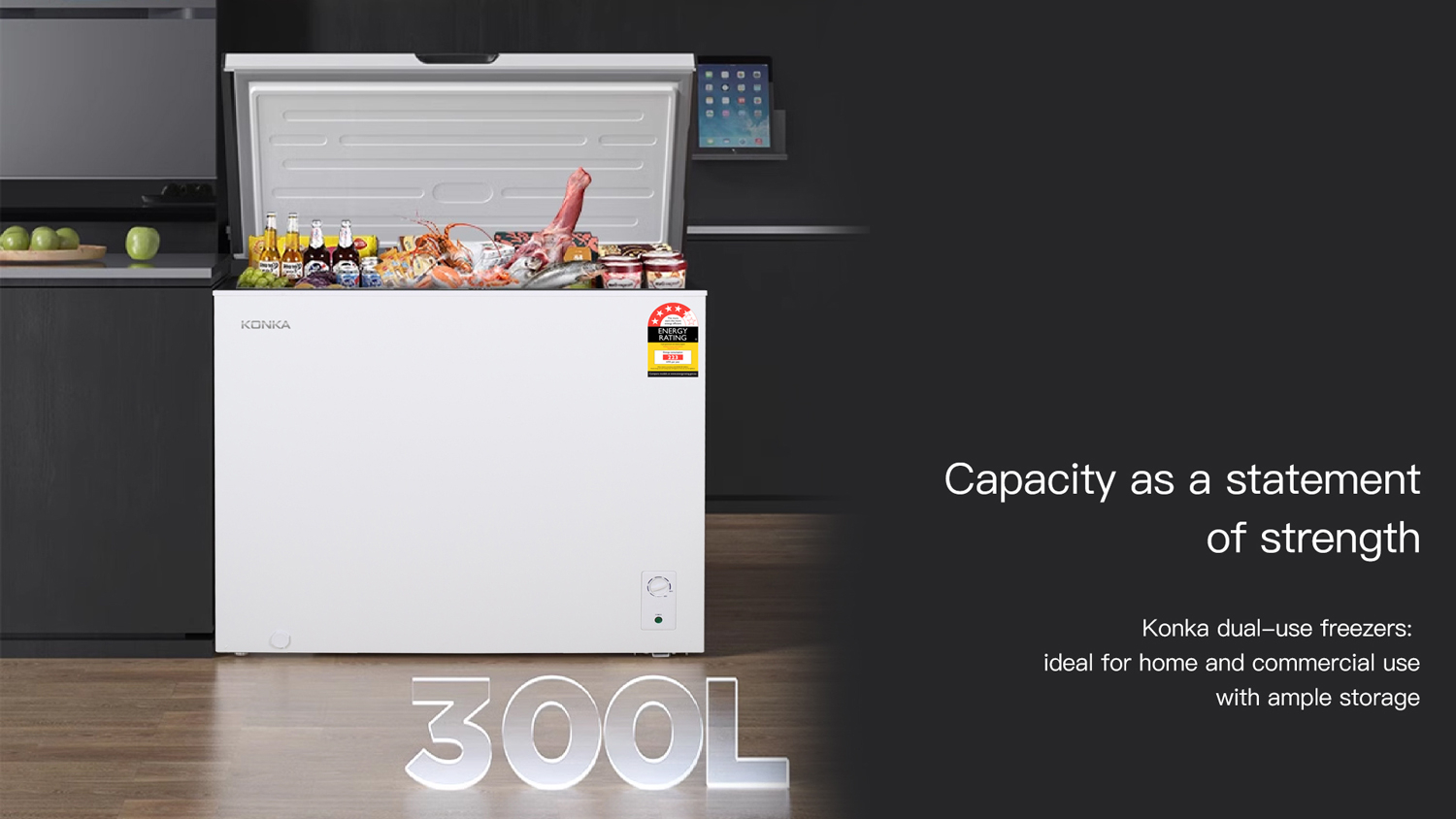 Convenient and efficient, the Konka 300L Hybrid Chest Fridge or Freezer lets you have a flexible space for your goods. This appliance equips adjustable temperature control to provide consistently reliable performance. It also highlights a spacious capacity and a top-opening design, making it ideal for families or small businesses alike.