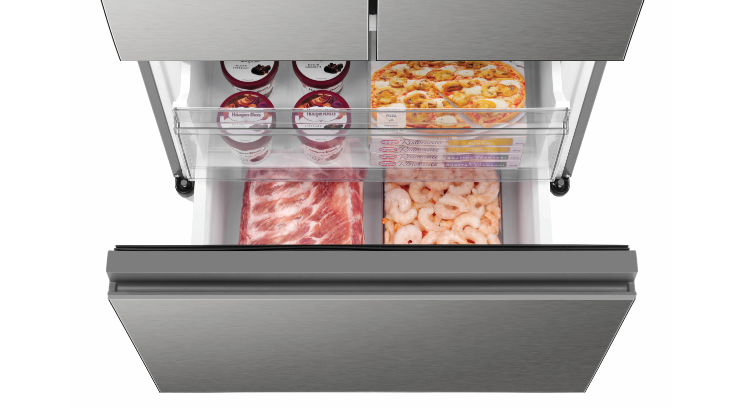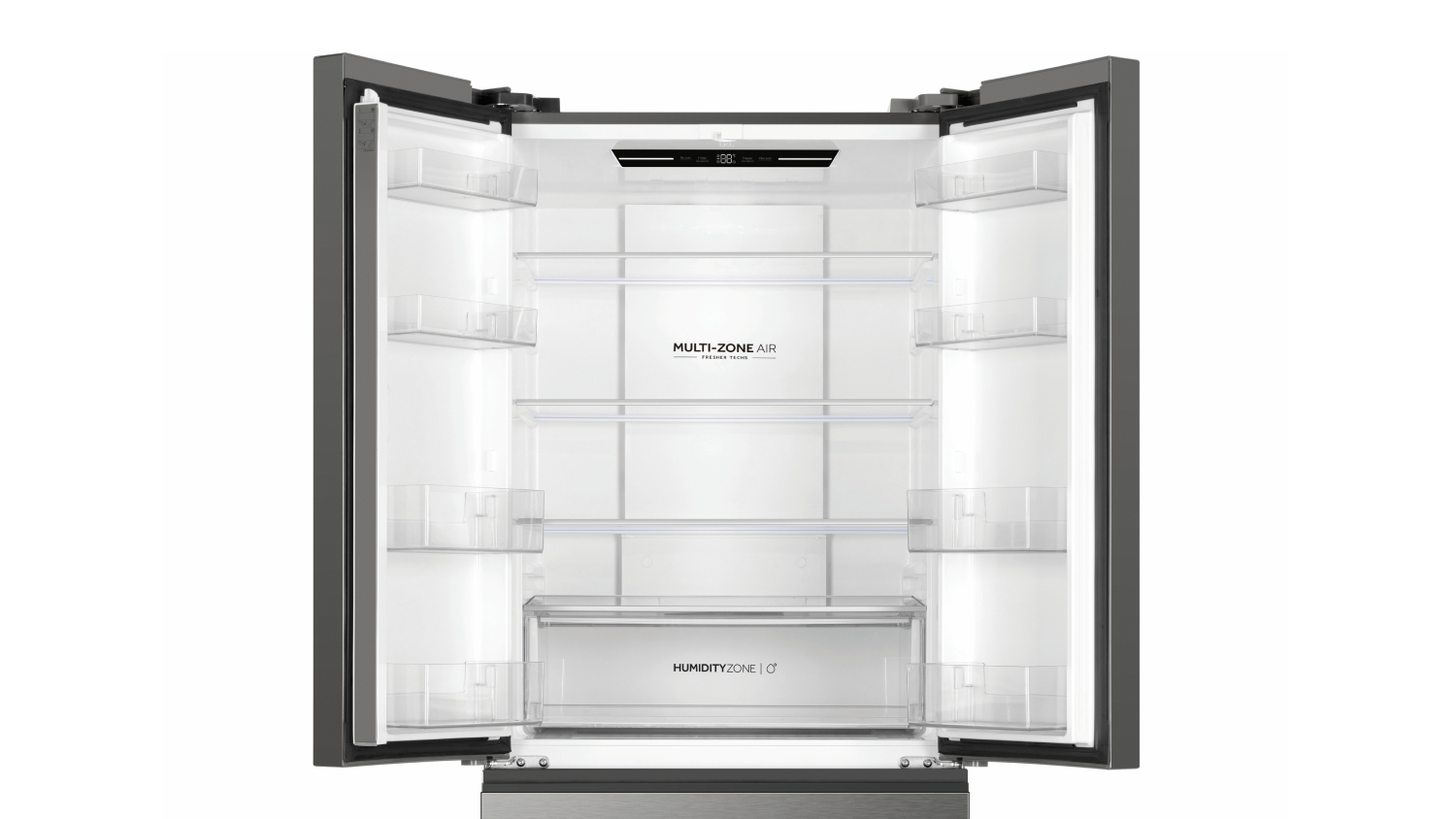 Practical Build: Haier’s French Door Fridge Freezer sports a modern flat door design, a horizontal recessed handle, and fingerprint-resistant Satina finish to better suit most kitchen interiors.