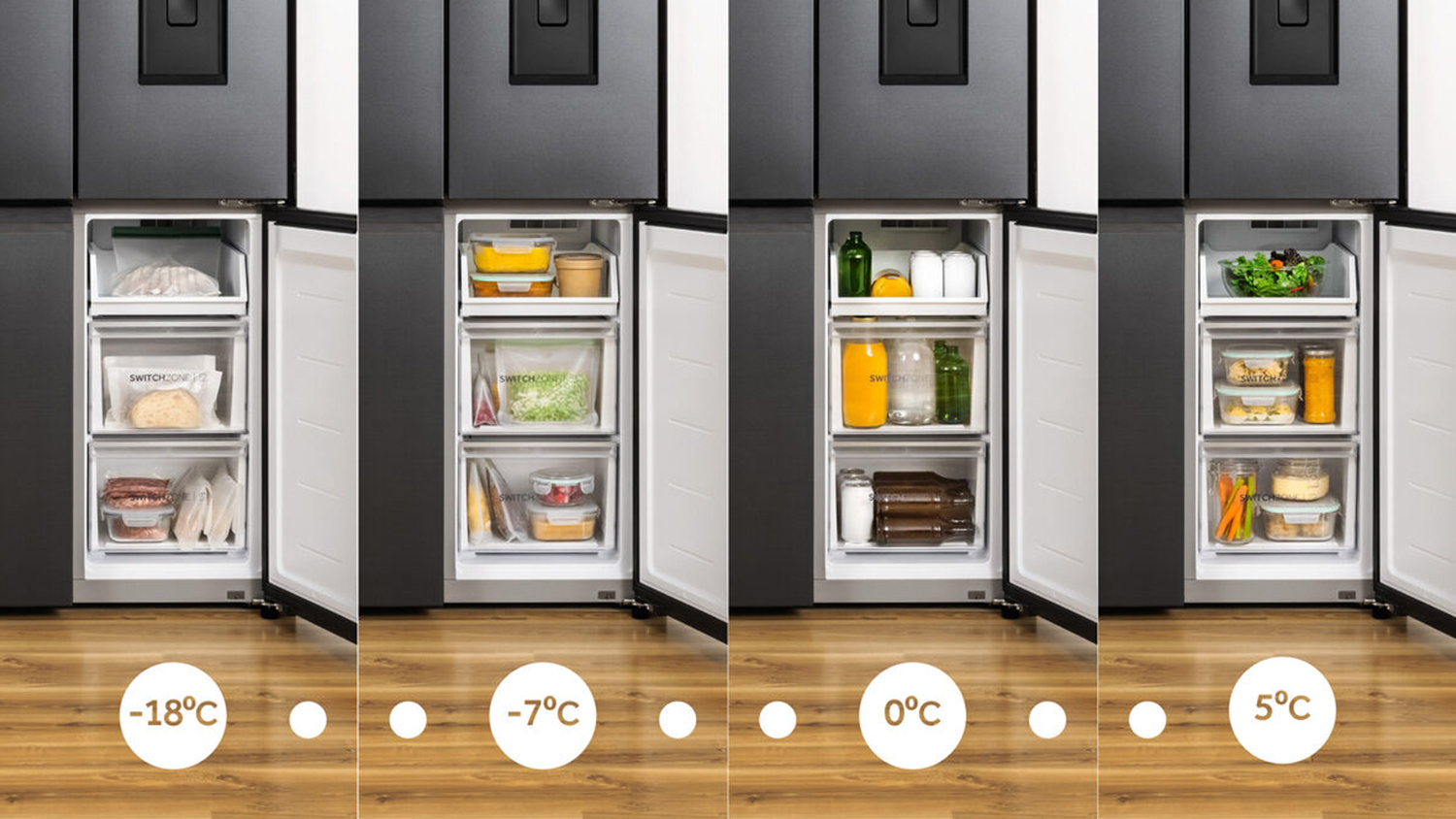 | Temperature Range (°C) | Fridge: +1 to +9 ℃, SwitchZone: -18 to +5 ℃, Freezer: -14 to -24 ℃ |