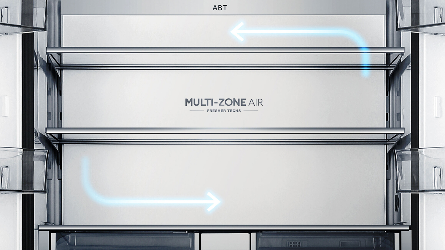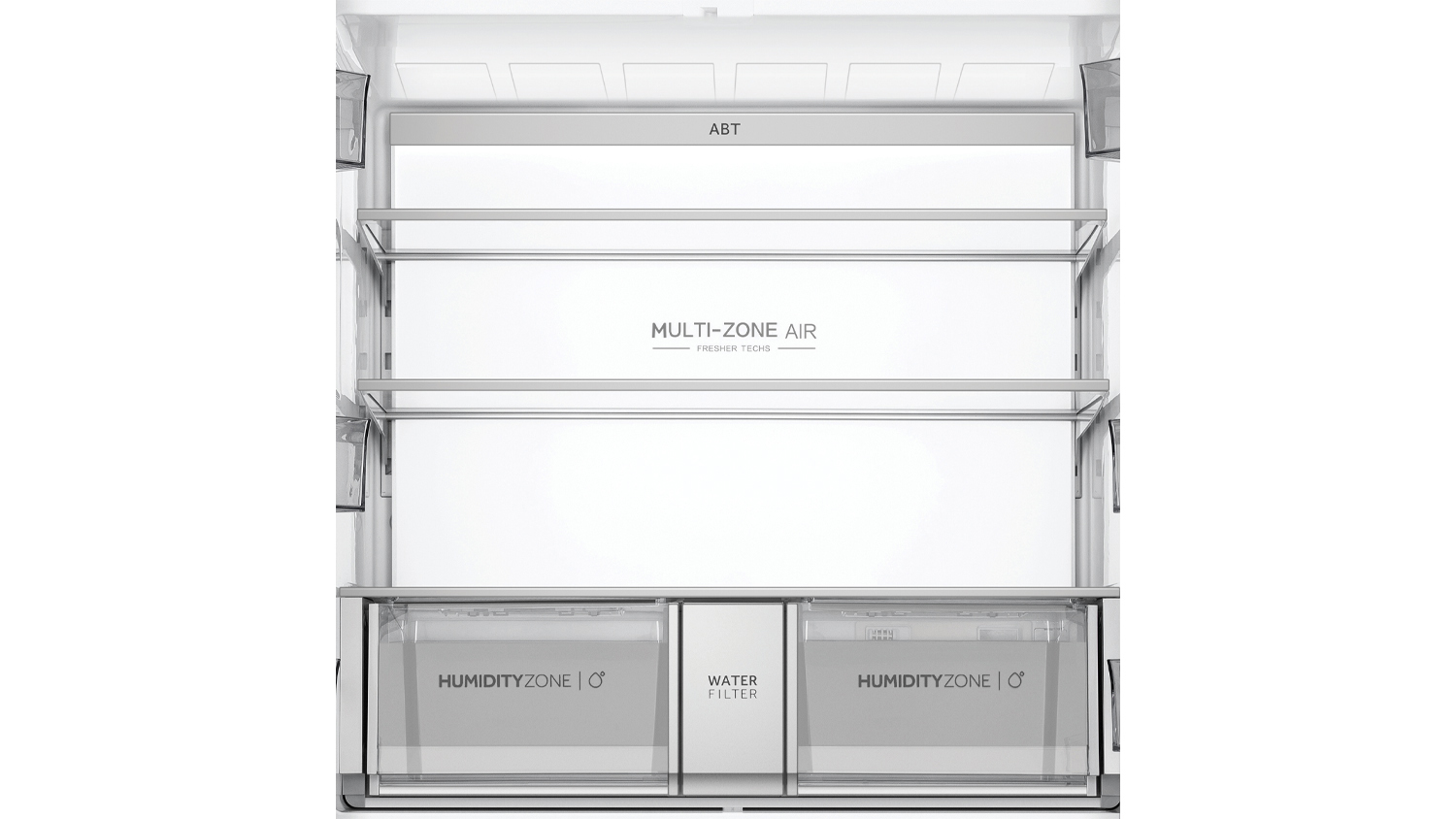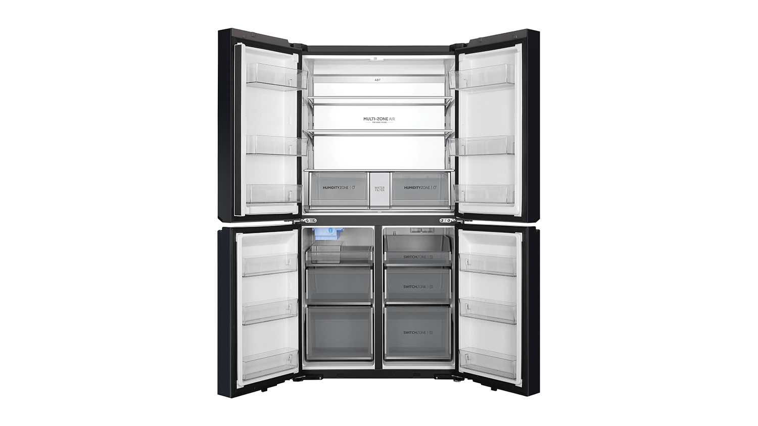 Keep groceries and produce fresh for longer using the Haier 600 Series 623L Quad Door Fridge Freezer with Water Dispenser. Featuring an advanced Multi-Zone Air system, Super Freeze technology, and Anti-Bacterial Treatment protection, this appliance provides an optimal environment for your food items. It also features a plumbed-in dispenser and automatic ice maker for effortless hydration.