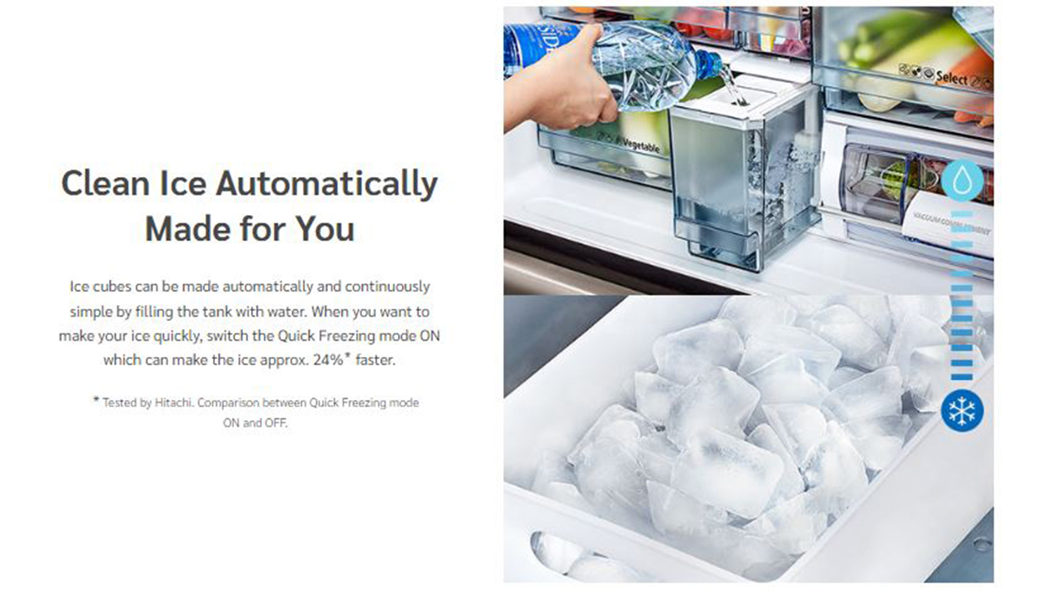 5 Tested by Hitachi. Comparison between Quick Freezing mode ON and OFF.