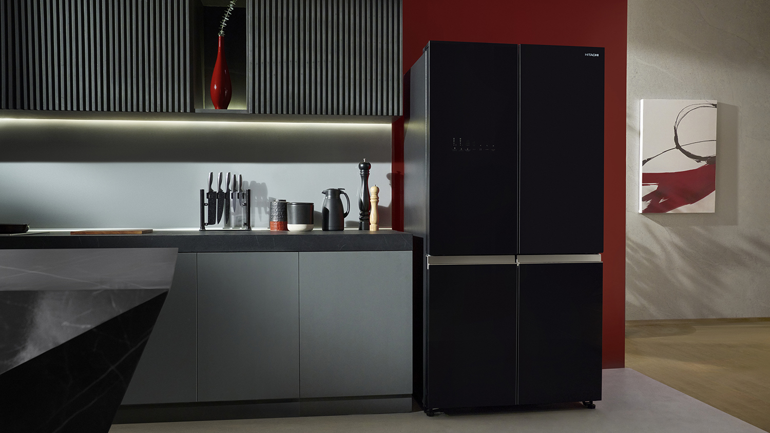 Hitachi 638L Quad Door Fridge Freezer - Black Glass (R-WB640VT0GBK)