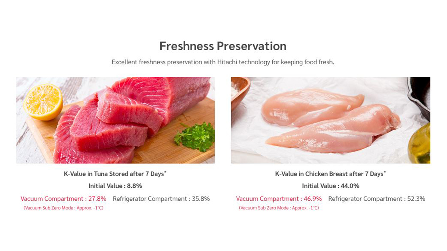 5 Tested by Hitachi. Comparison between Quick Freezing mode ON and OFF.