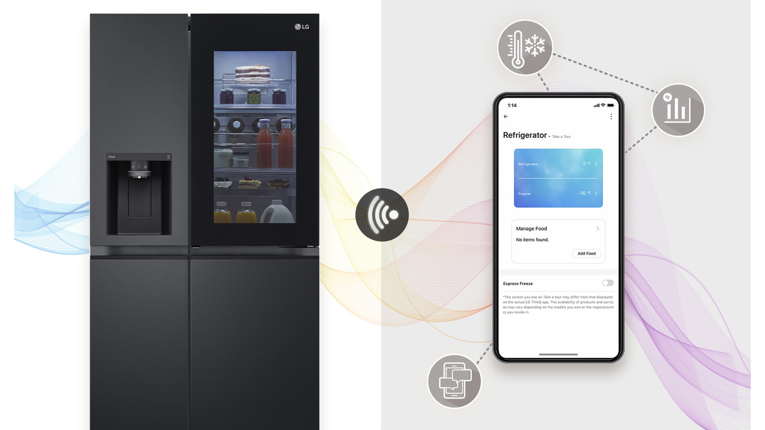 *The LG ThinQ® app is available on compatible Android or iOS smartphones. Phone and Home Wi-Fi Data connection and product registration with LG ThinQ® required.