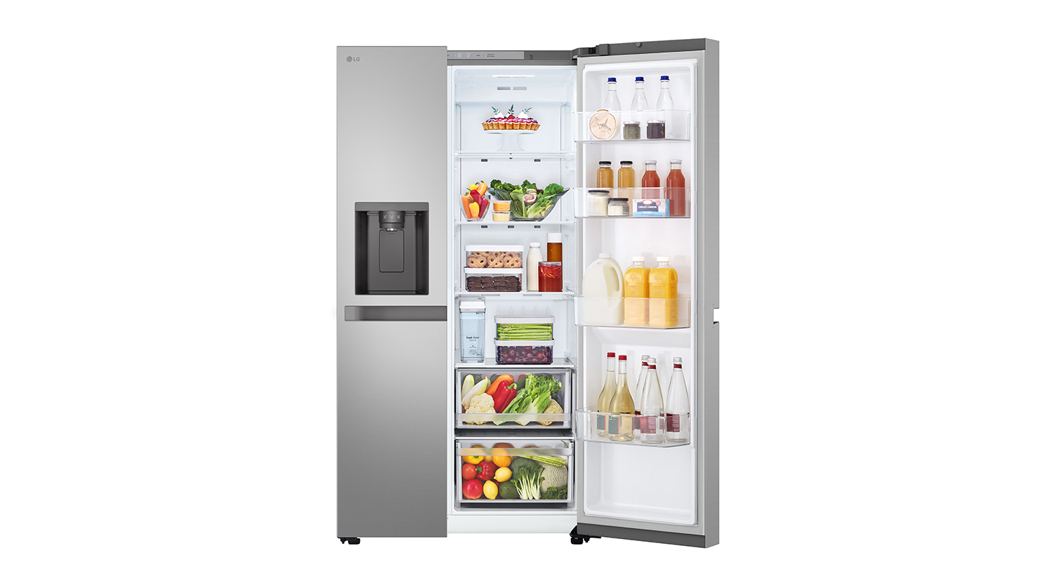 Get a safe and spacious environment for your day-to-day groceries with the LG 641L Side-by-Side Fridge Freezer. A practical addition to your household, this appliance combines innovative cooling technology and a smart inverter compressor to preserve various food items efficiently. It also comes with an ice and water Dispenser, so you can prepare refreshing drinks whenever you want.