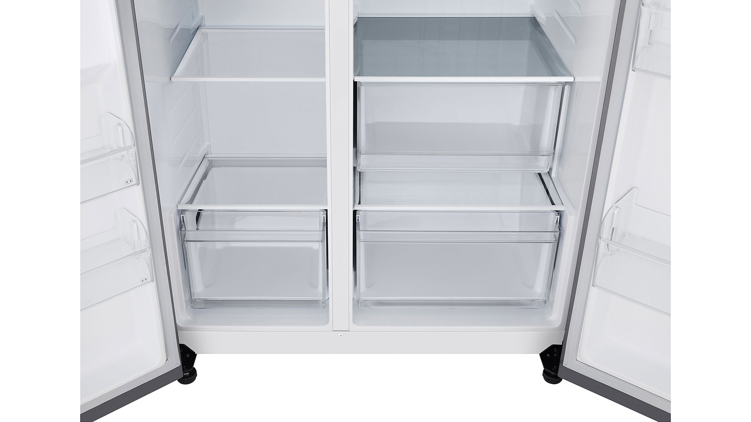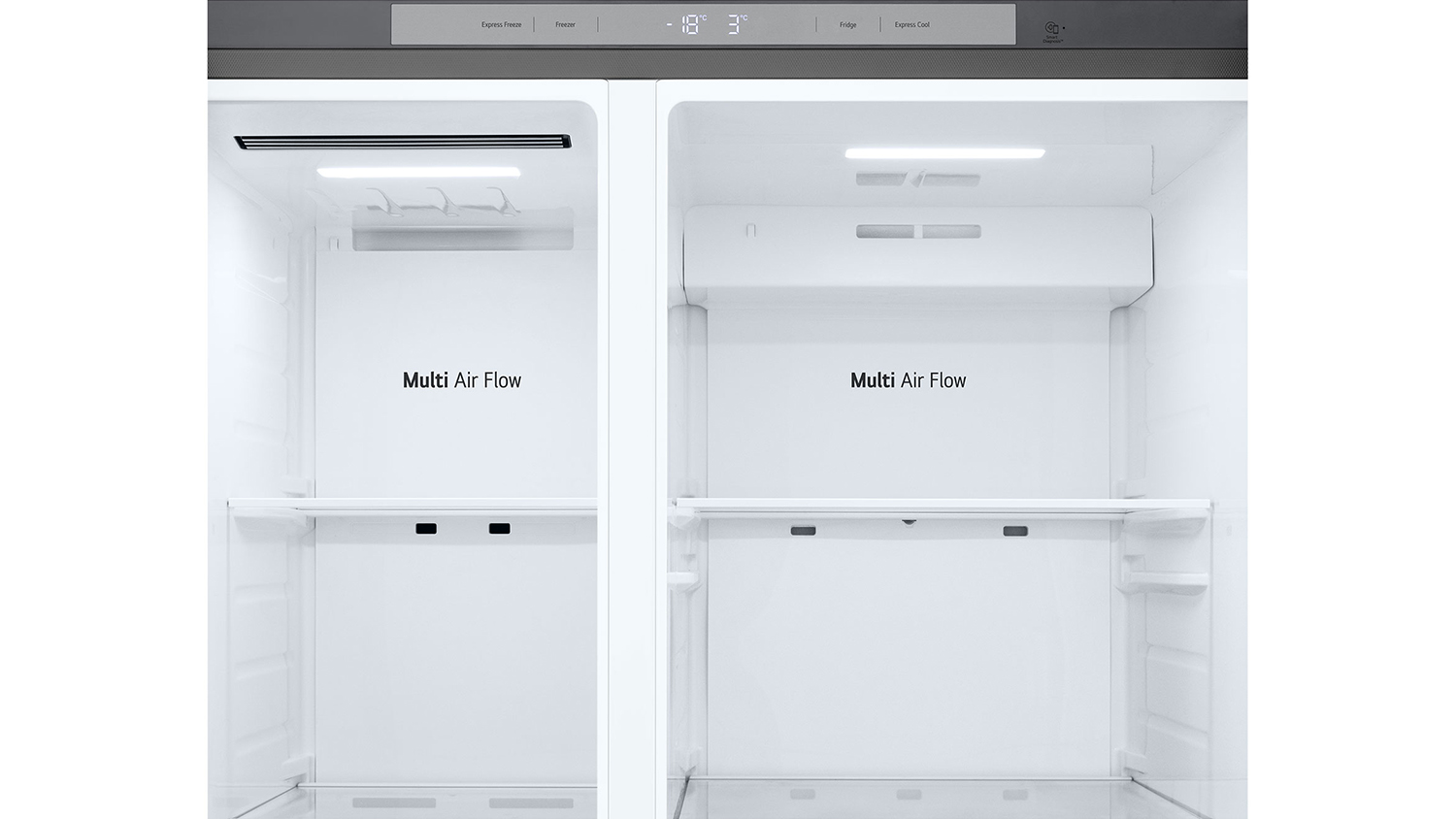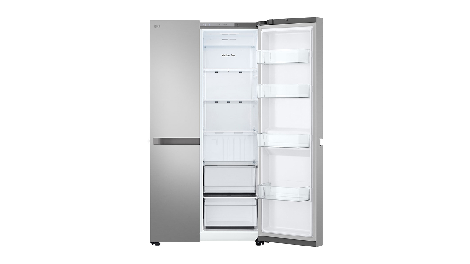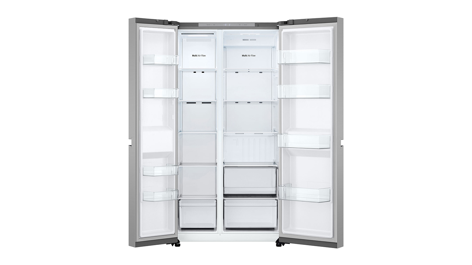 Prolong the freshness of your food items with the LG 664L Side-by-Side Fridge Freezer. This appliance boasts an advanced Multi AirFlow system that delivers cold air evenly throughout the fridge and freezer. It also features a side-by-side layout, providing separate fridge and freezer compartments with plenty of shelving for maximum convenience.