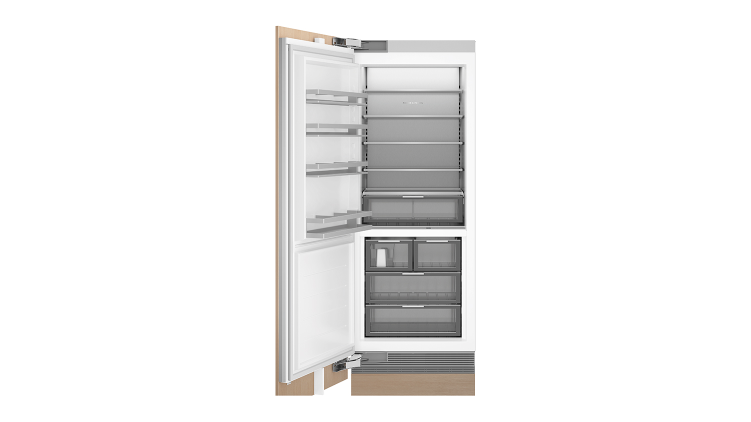 Customise with your own kitchen cabinetry and handles, or purchase the Fisher & Paykel Stainless Steel door panel.