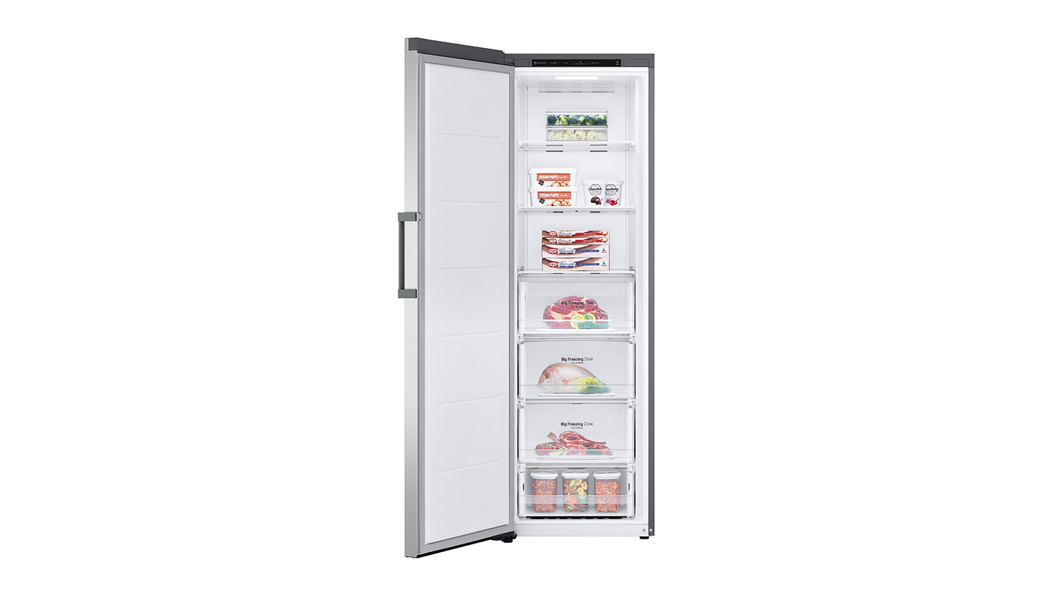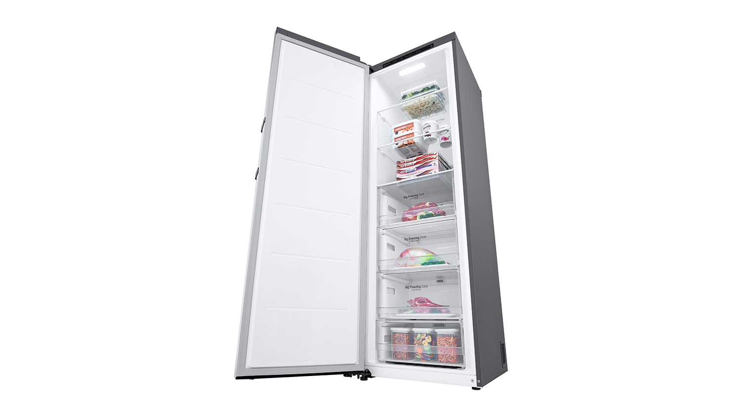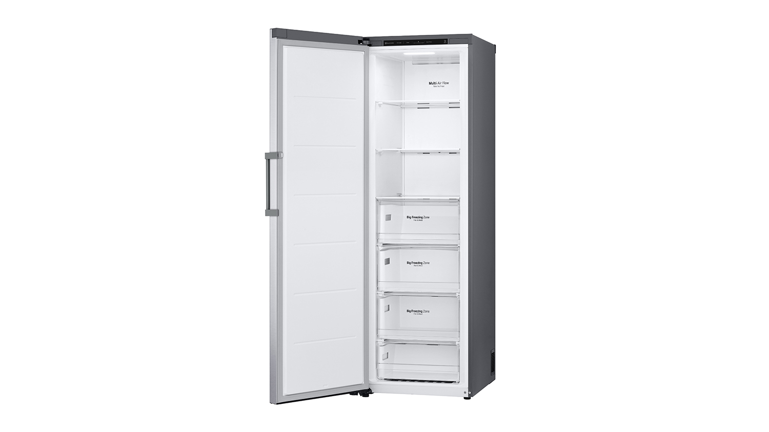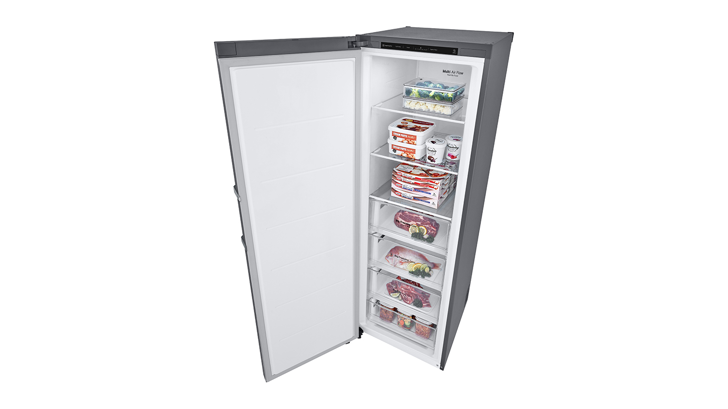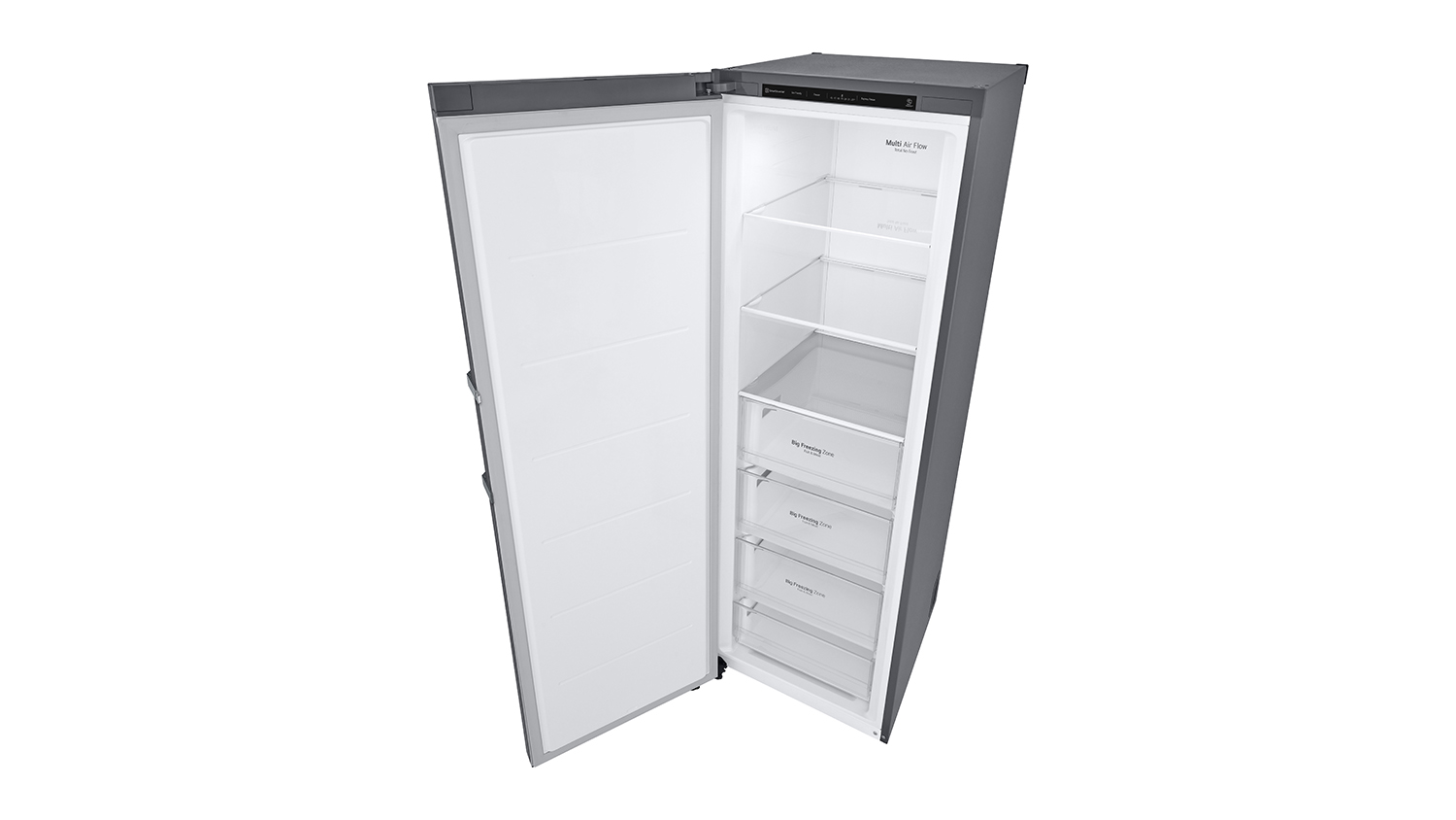Efficiently preserve and organise your frozen items in this LG 324L Single Door Vertical Freezer. A practical addition to your home, this appliance boasts a generous interior space with multiple shelving options. It also incorporates Multi Air Flow technology and Express Freeze to deliver fast, even cooling performance. Plus, it flaunts a frost-free design, eliminating the need for manual defrosting.